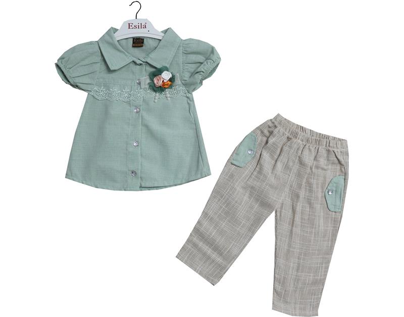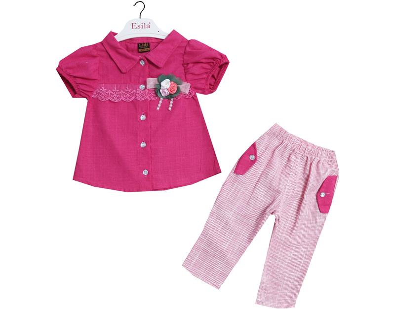 بدلة صيفية ثلاثية للبيع بالجملة 9060 مع شورت جينز للفتيات بعمر 3/6 سنوات