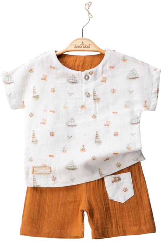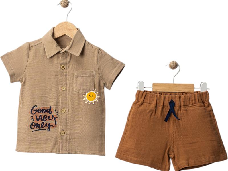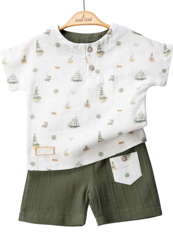 124262 قمصان صيفية للأطفال بالجملة مع شورت للأطفال لمدة 6/24 شهرا