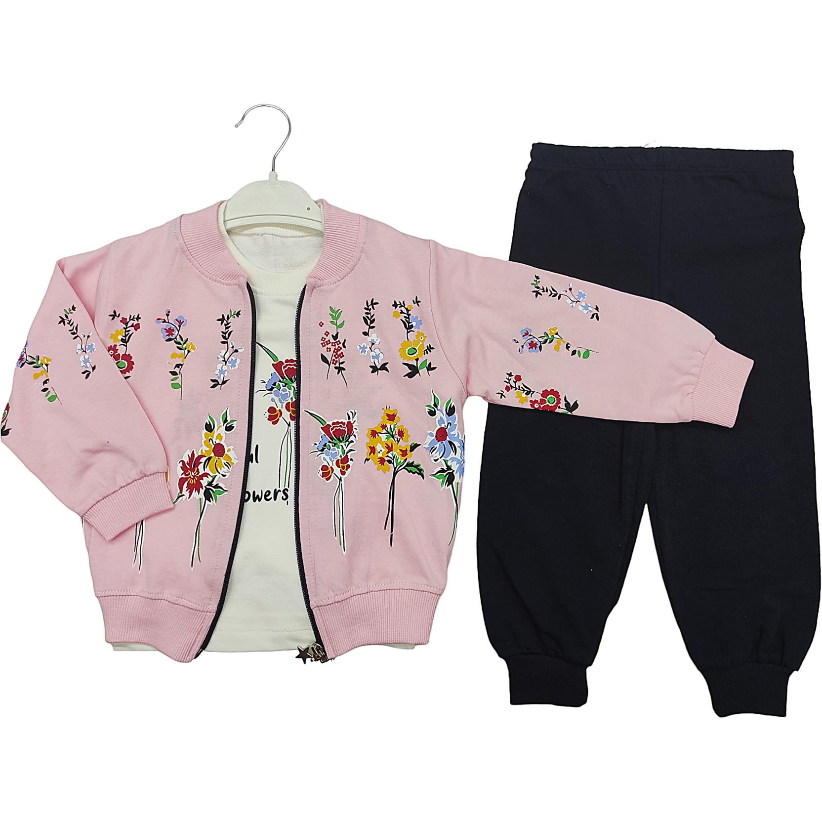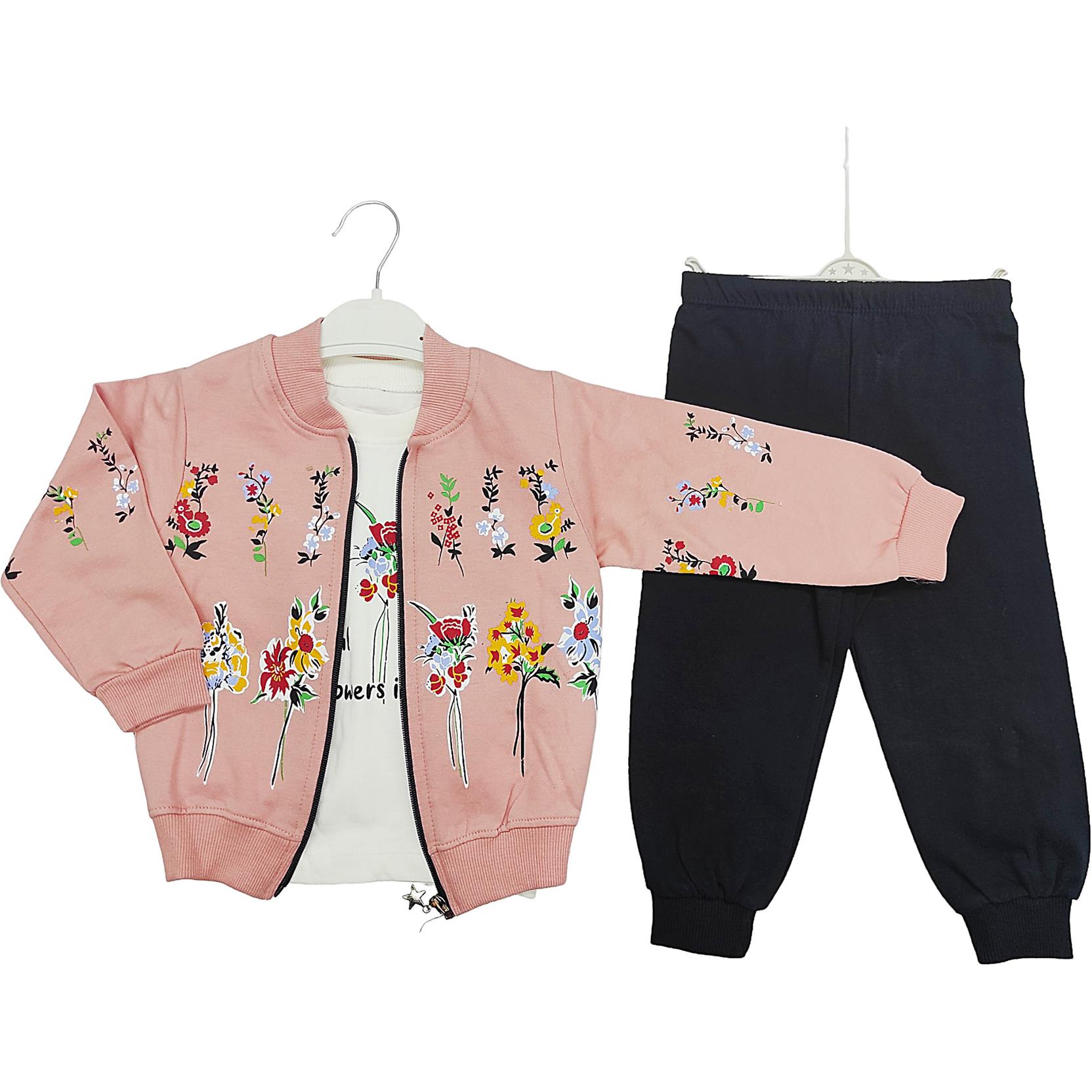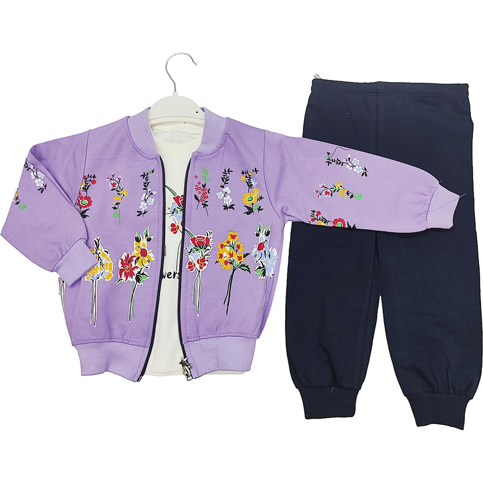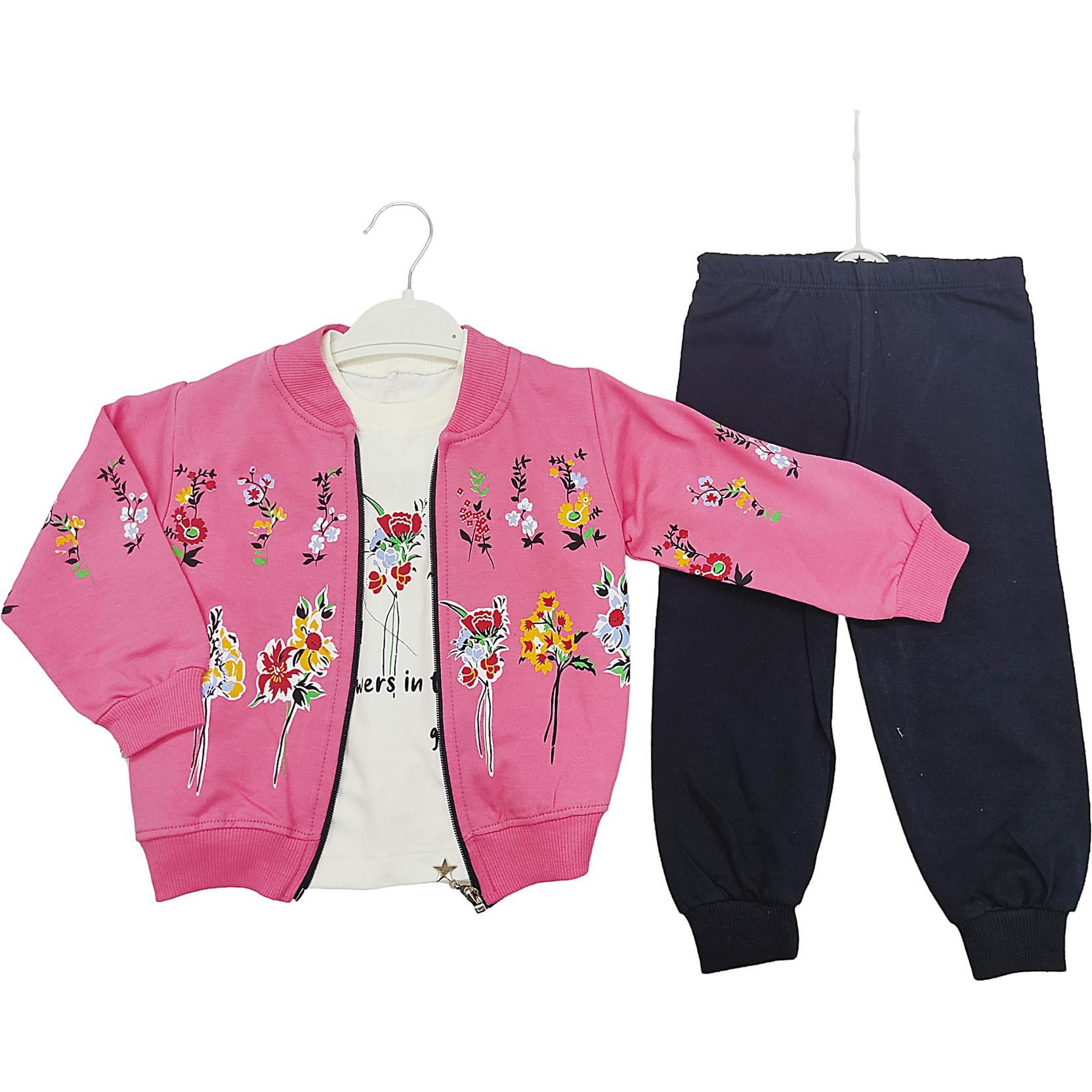 الجملة الأطفال ديمي الموسم ثلاث قطع الدعاوى مع زهرة طباعة للفتيات لمدة 2-3-4-5 سنة