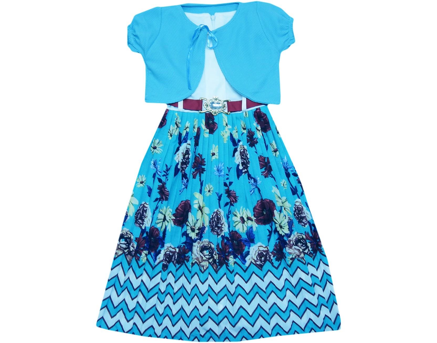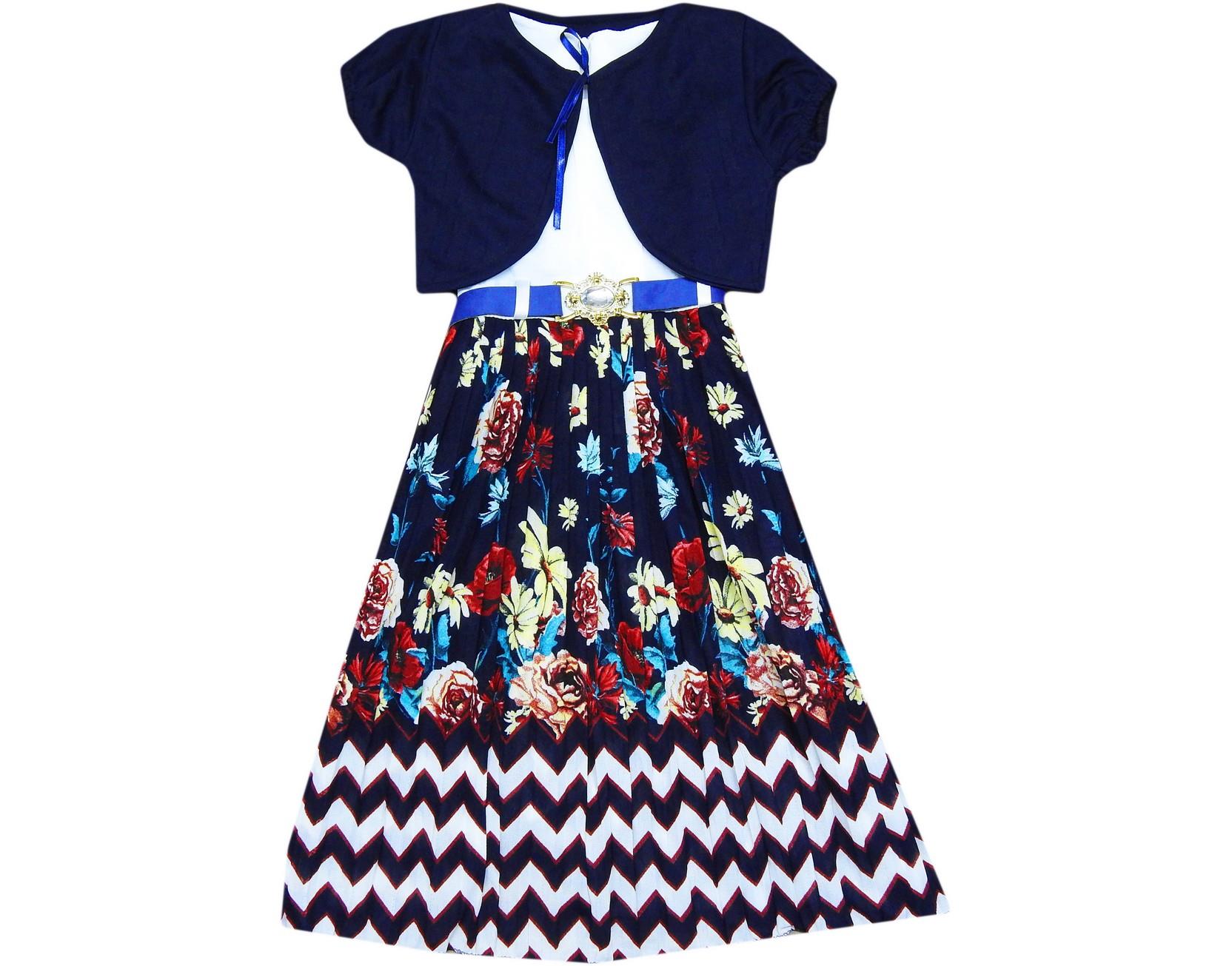 toptan çiçek desen süslemeli kız çocuk garson elbise 4-6-8-10 yaş