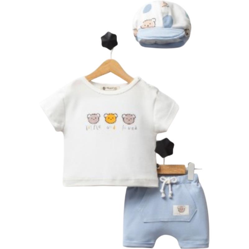 0543 Wholesale children's summer T-shirts, shorts and hats in a set for boys 6/18 months