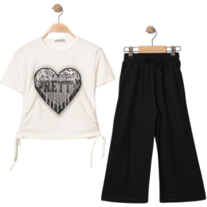 8346 wholesale children's summer two-piece suits, sweaters with a heart and trousers for girls aged 9/12 years