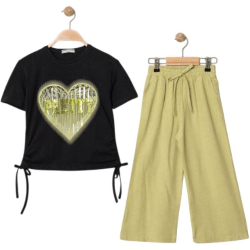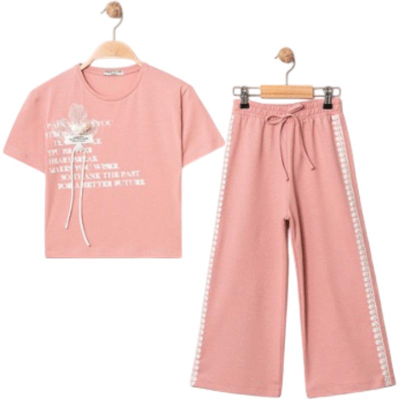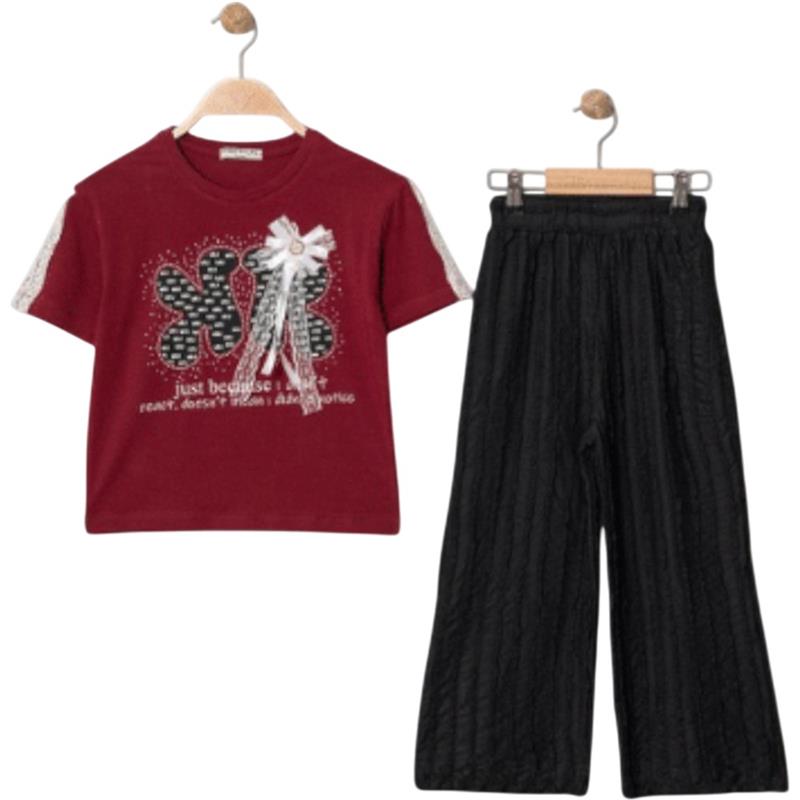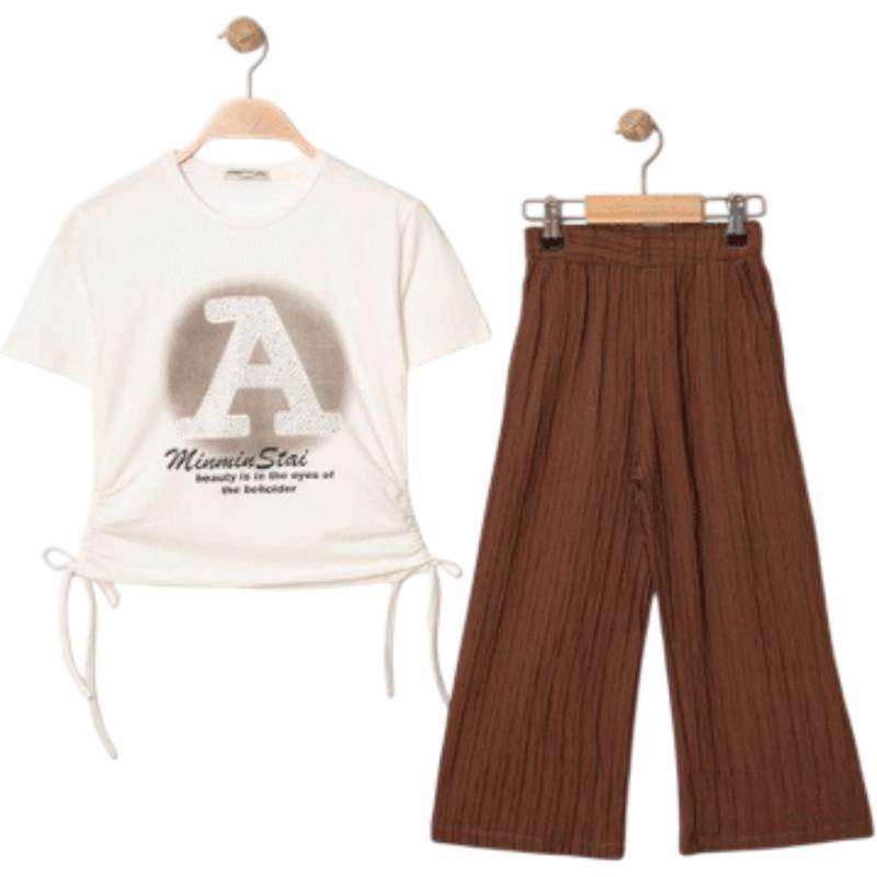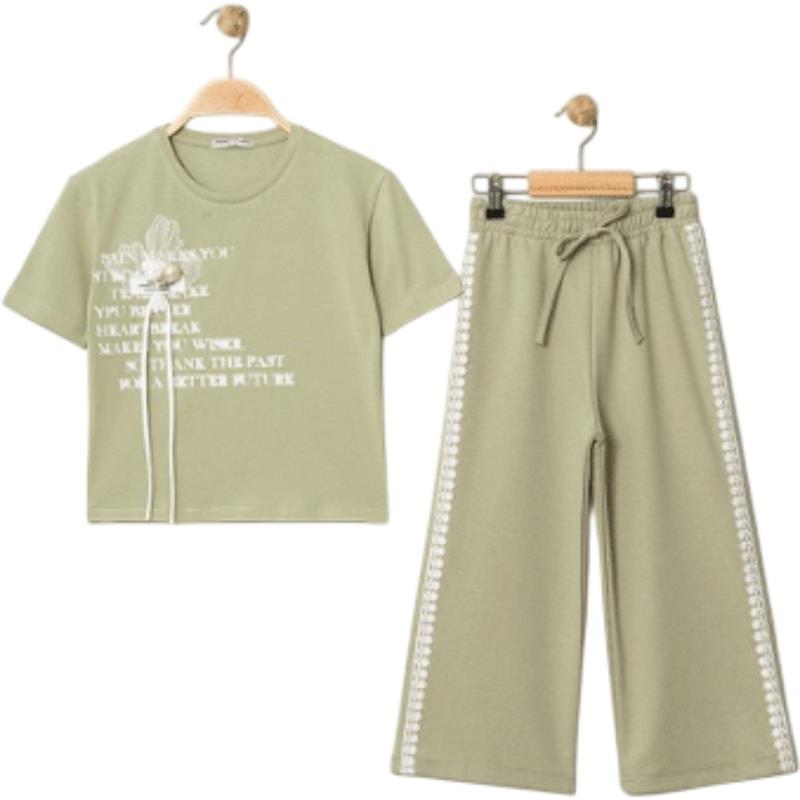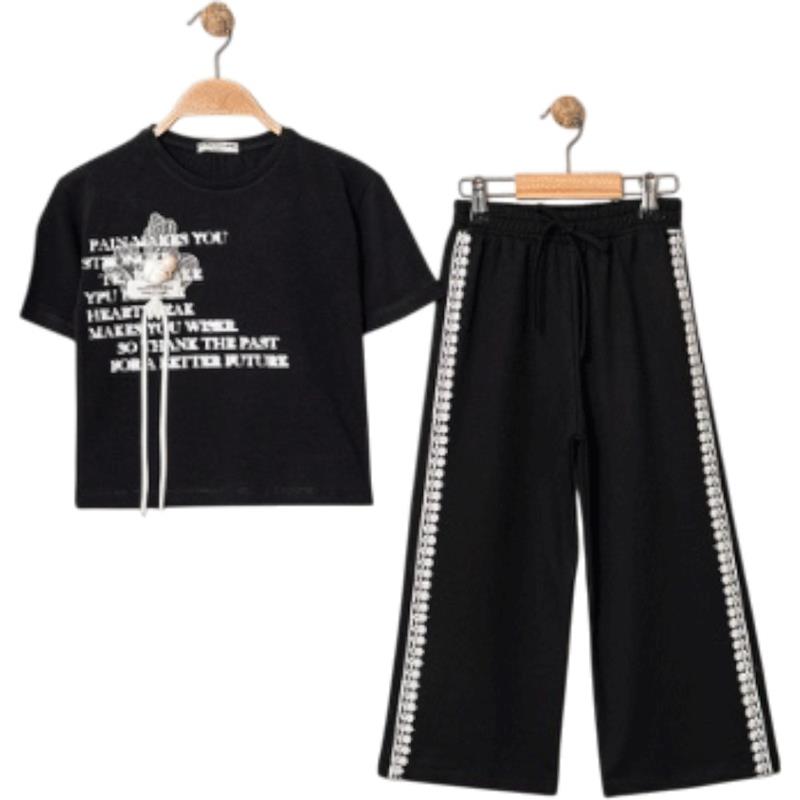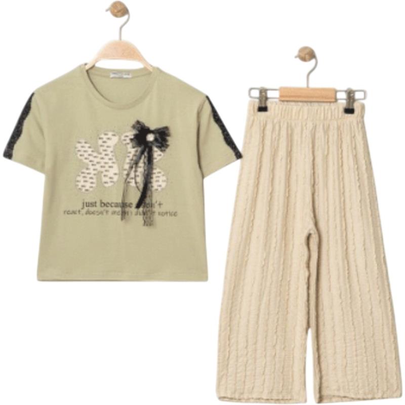 8340 Wholesale Summer Two-Piece Set for Girls 9-12 Years Old, T-Shirt with Bow Tie and Trousers