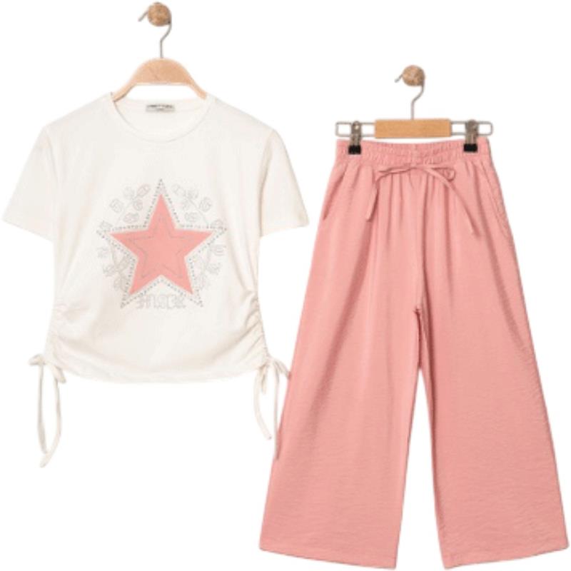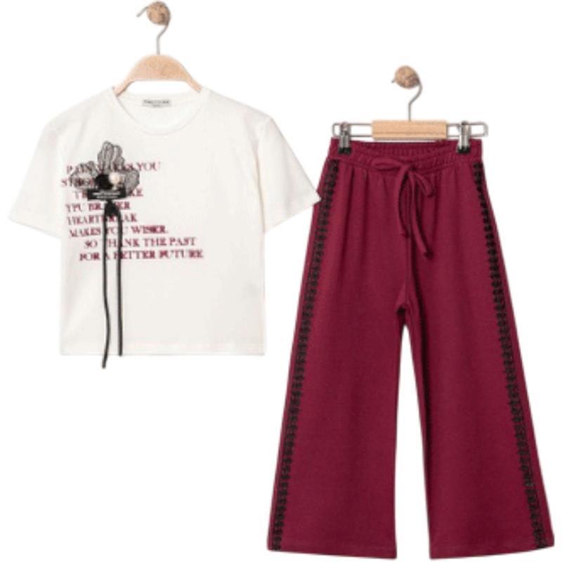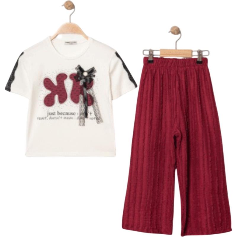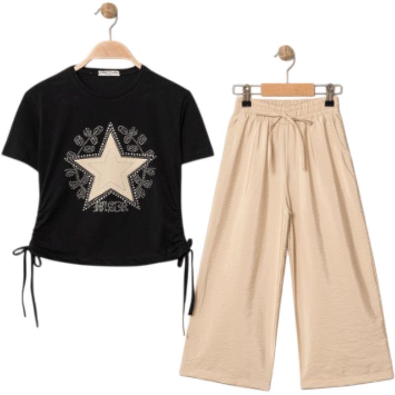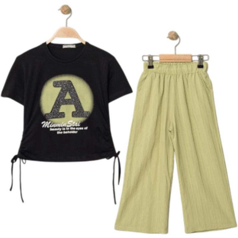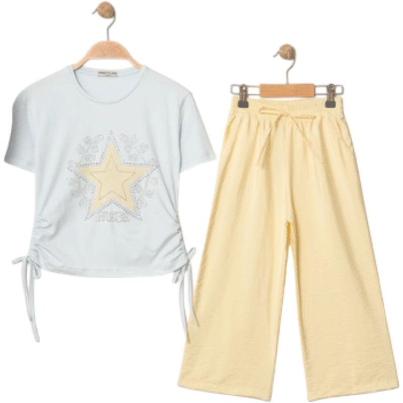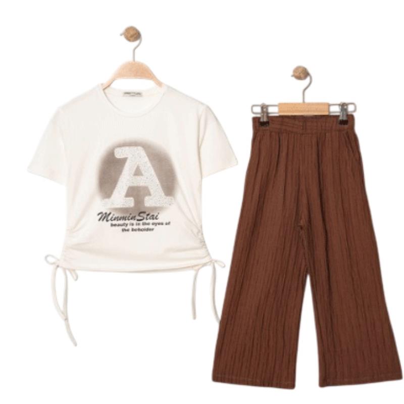 8340 Wholesale Summer Two-Piece Set for Girls 9-12 Years Old, T-Shirt with Bow Tie and Trousers