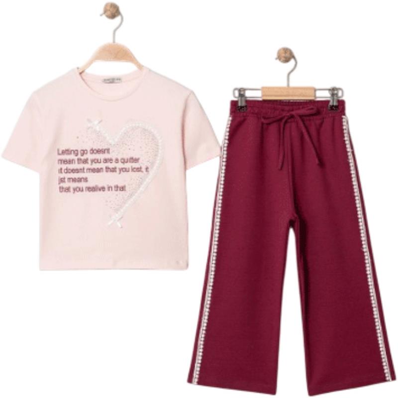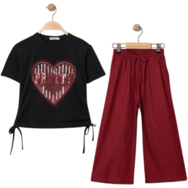 8345 wholesale children's summer two-piece suits, sweaters with a heart print and trousers for girls aged 9/12 years