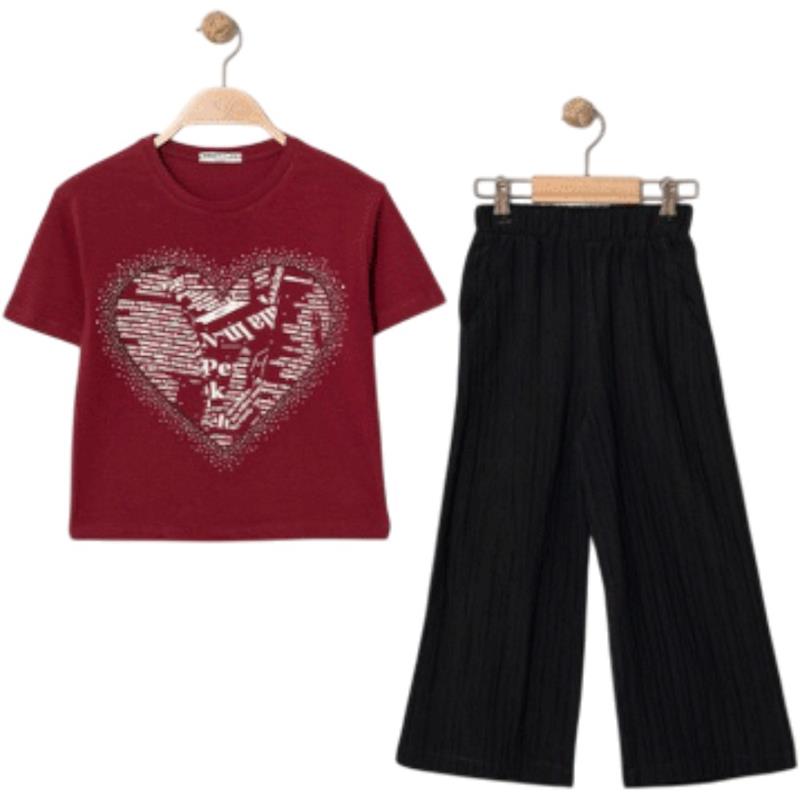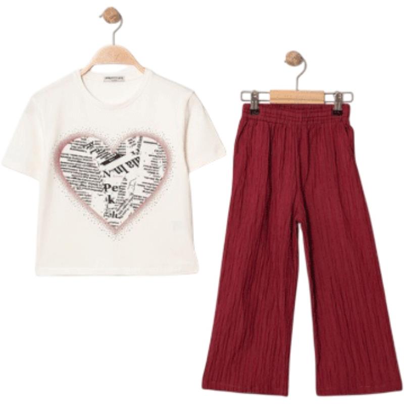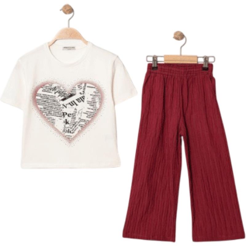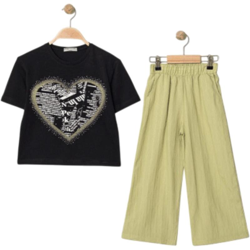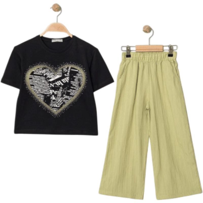7345 wholesale children's summer two-piece suits, T-shirts with heart embroidery and trousers for girls aged 5/8 years