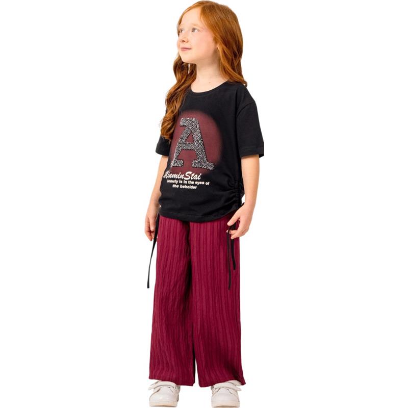 8348 wholesale children's summer two-piece suits, sweaters with A-print and trousers for girls aged 9/12 years