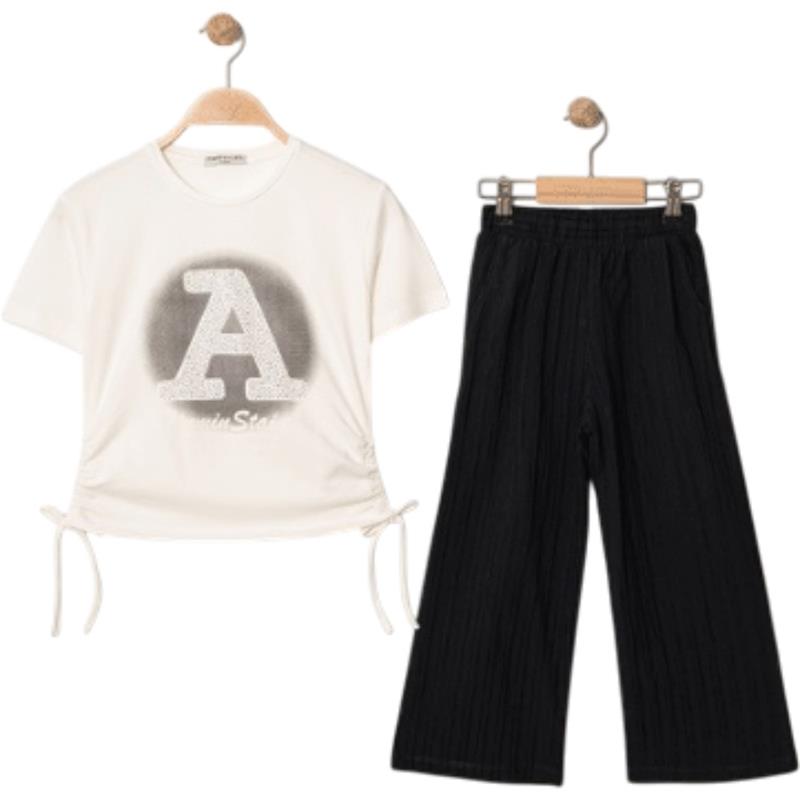 7348 wholesale children's summer two-piece suits, T-shirts with A-print and trousers for girls aged 5/8 years