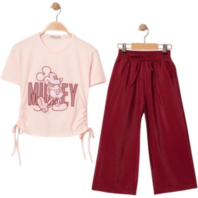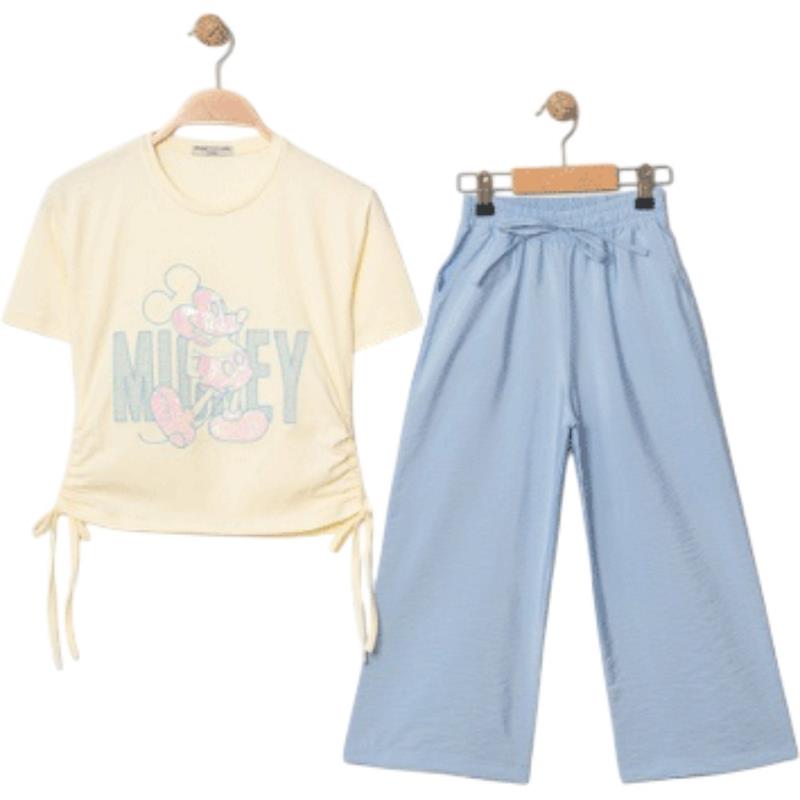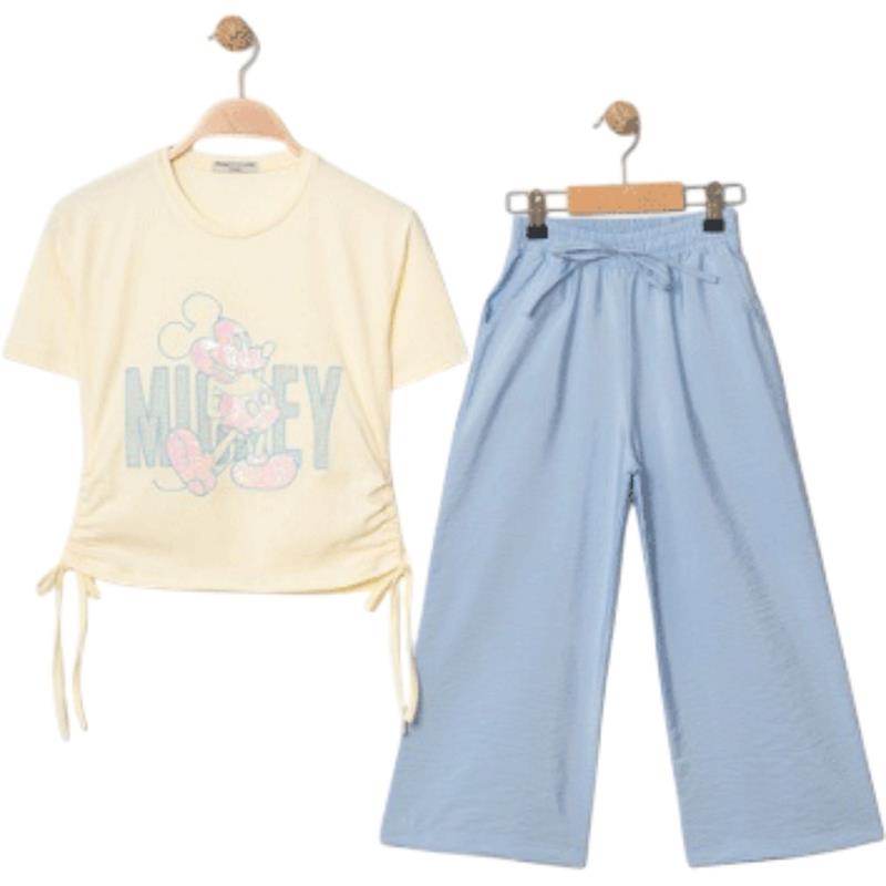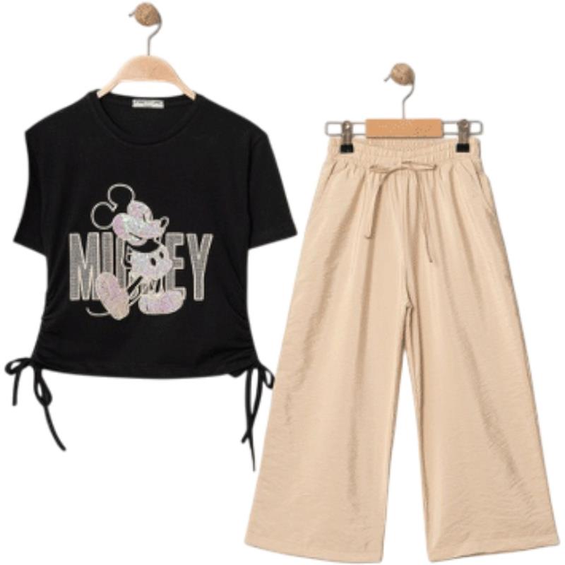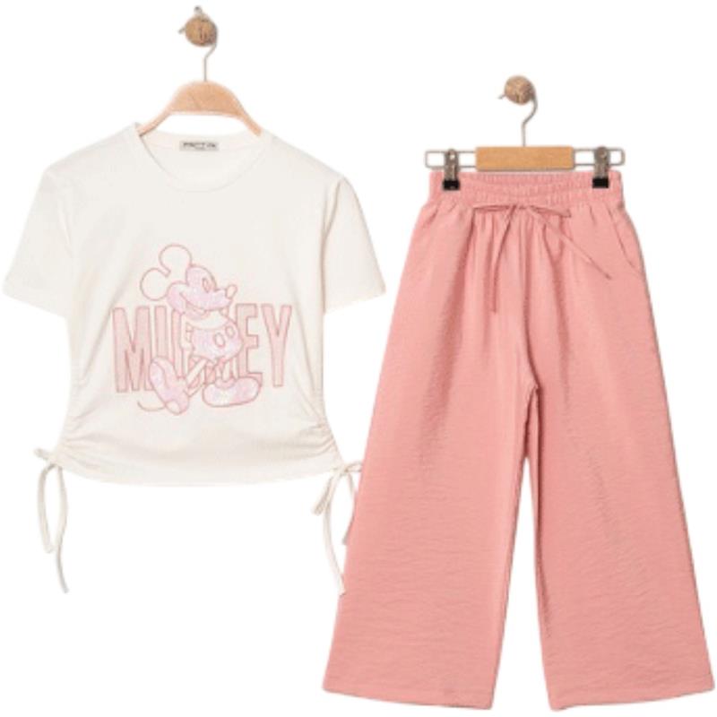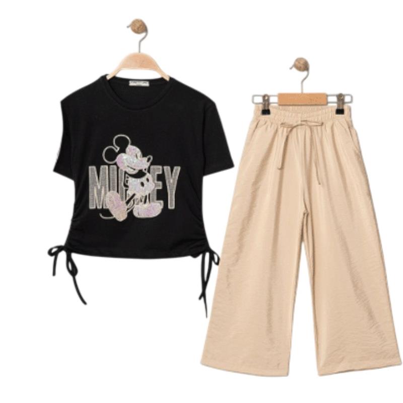 8350 wholesale children's summer two-piece suits, T-shirts with MİCKEY print and trousers for girls aged 9/12 years