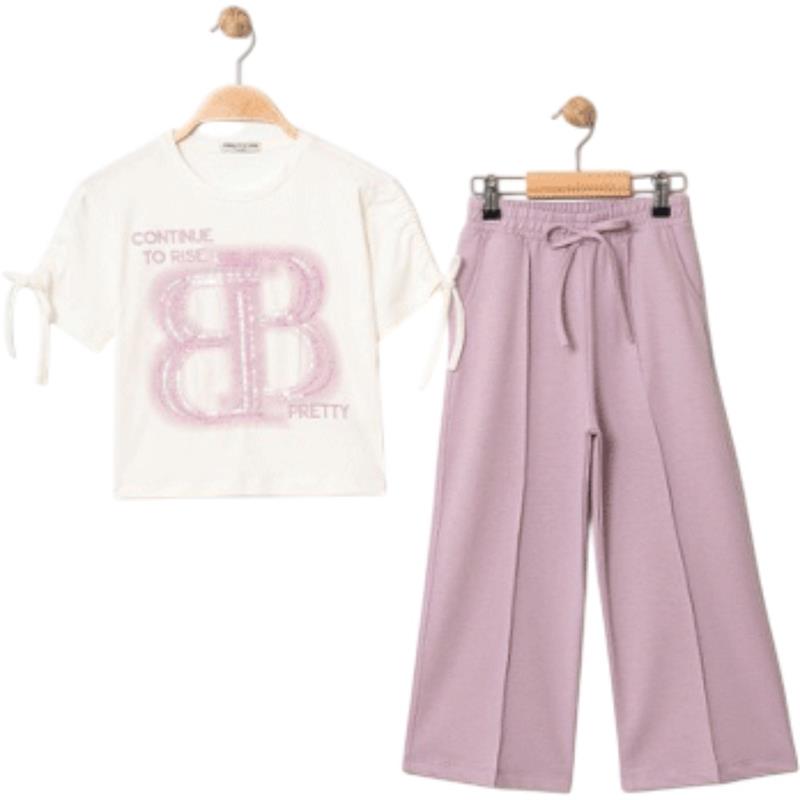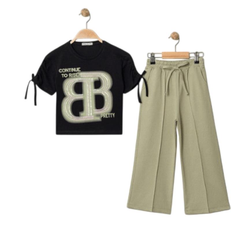 7334 wholesale children's summer two-piece suits, T-shirts with BB print and trousers for girls aged 5/8 years