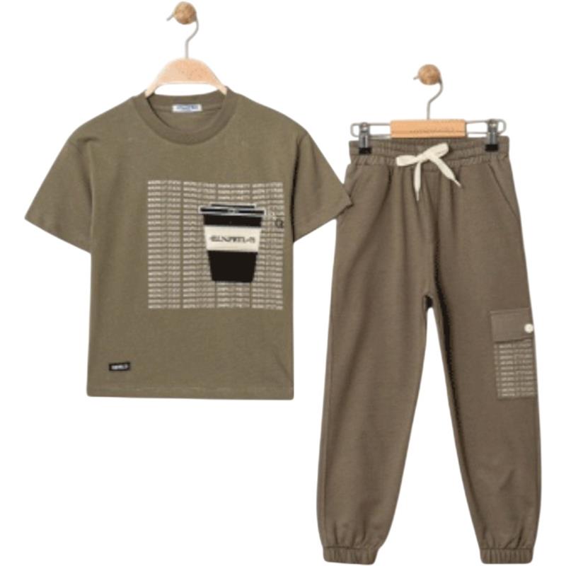 3318 Wholesale two-piece summer suit for boys aged 5-8 years, including ENLO printed T-shirt and trousers