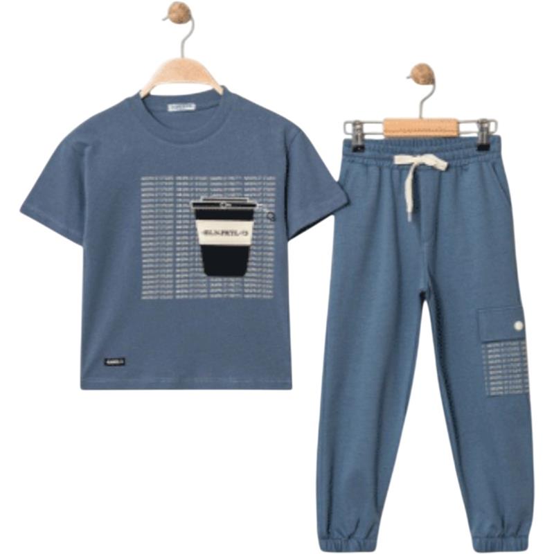 3319 Wholesale two-piece summer suit for boys aged 5-8 years, including a T-shirt with an EY print and trousers