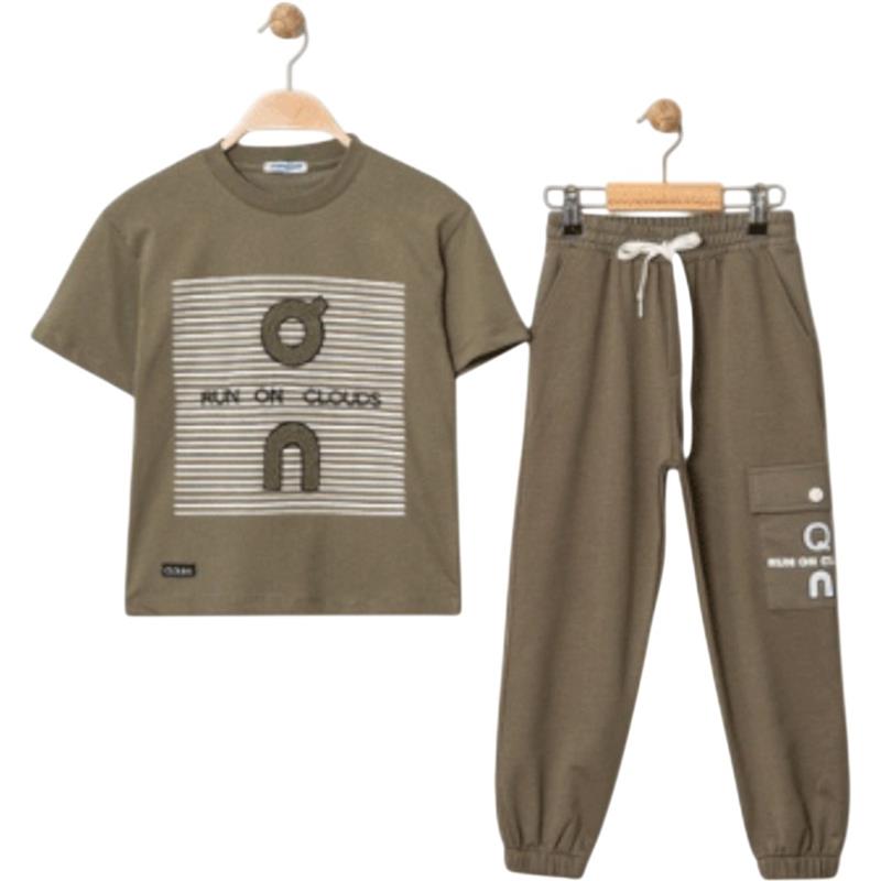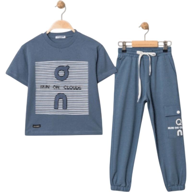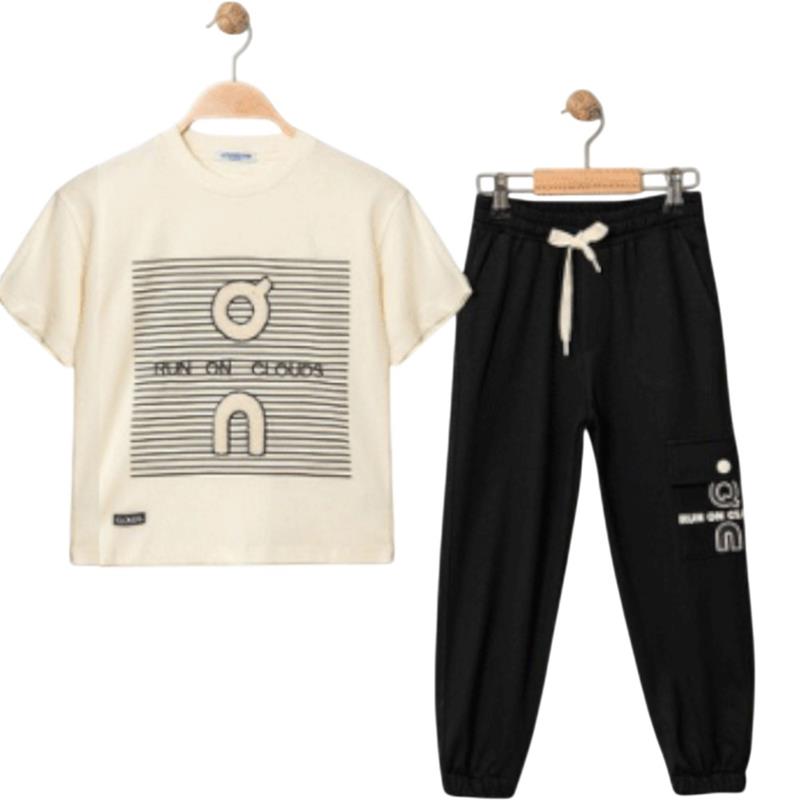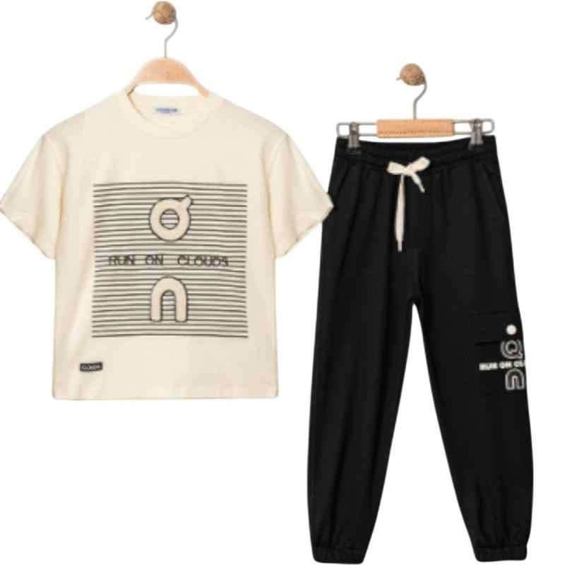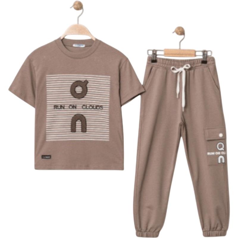 4319 Wholesale two-piece summer suit for boys aged 9-12 years, including a T-shirt with an EY print and trousers