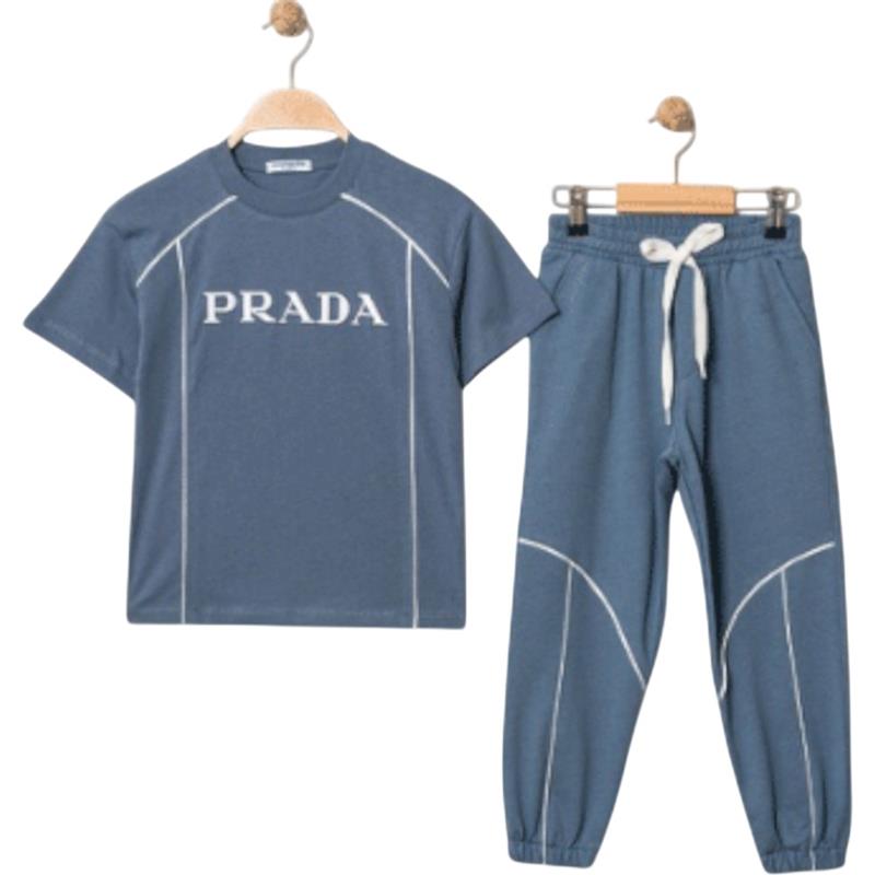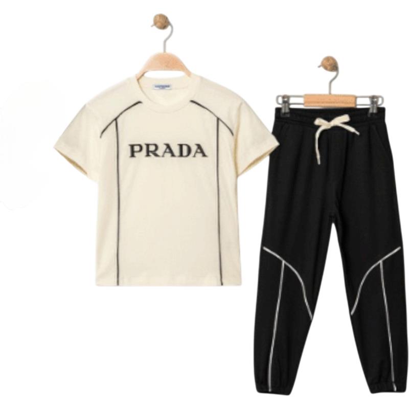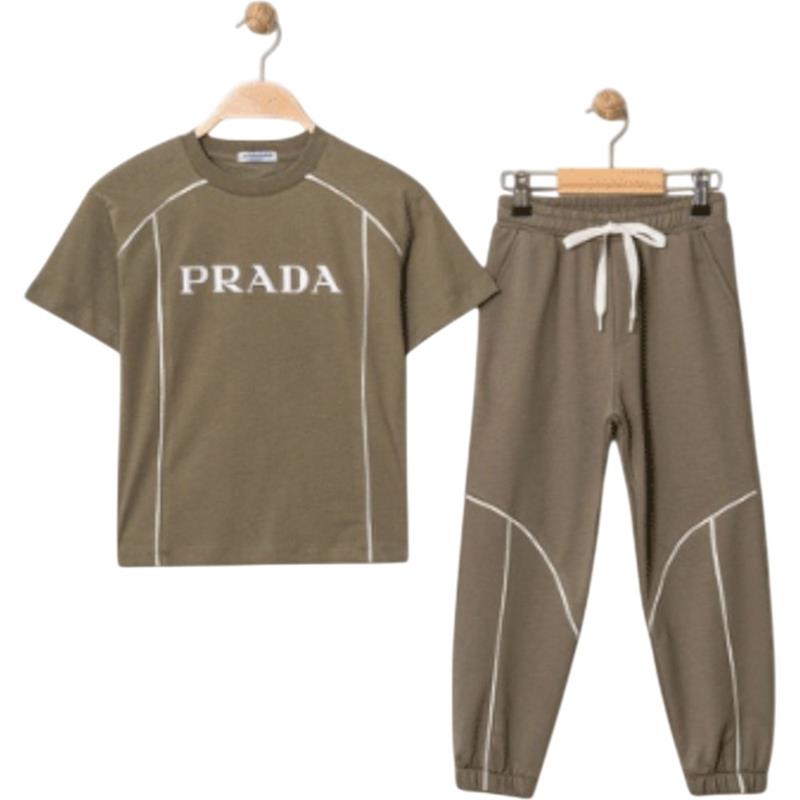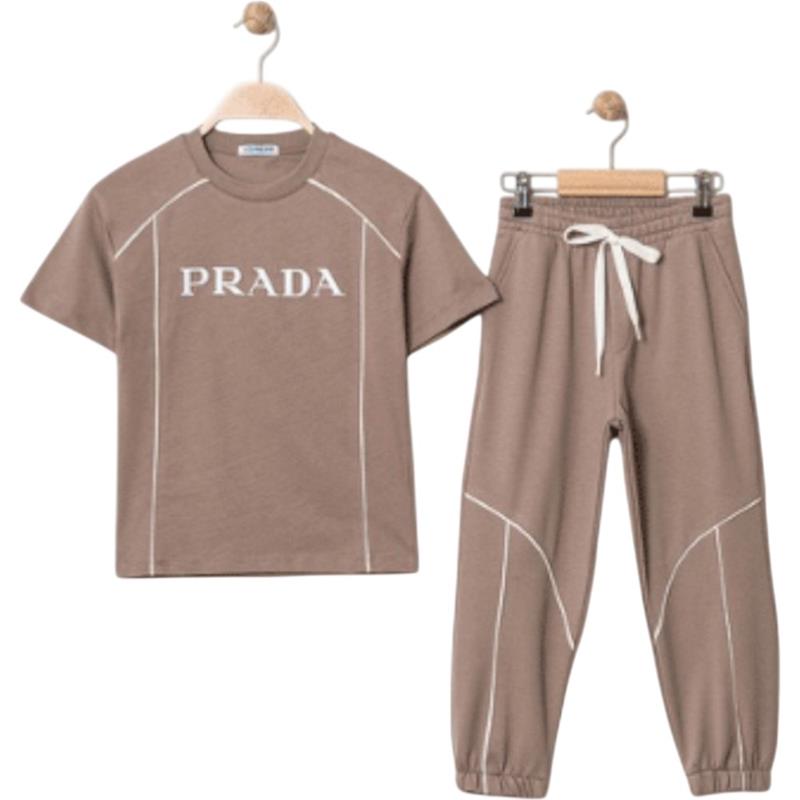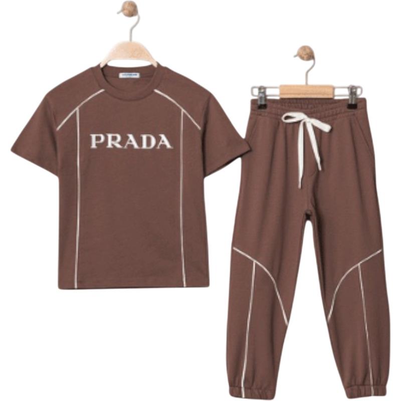 4322 Wholesale Two-Piece Summer Suit Set for Boys Aged 9-12 Years, Including PRADA Printed T-shirt and Trousers