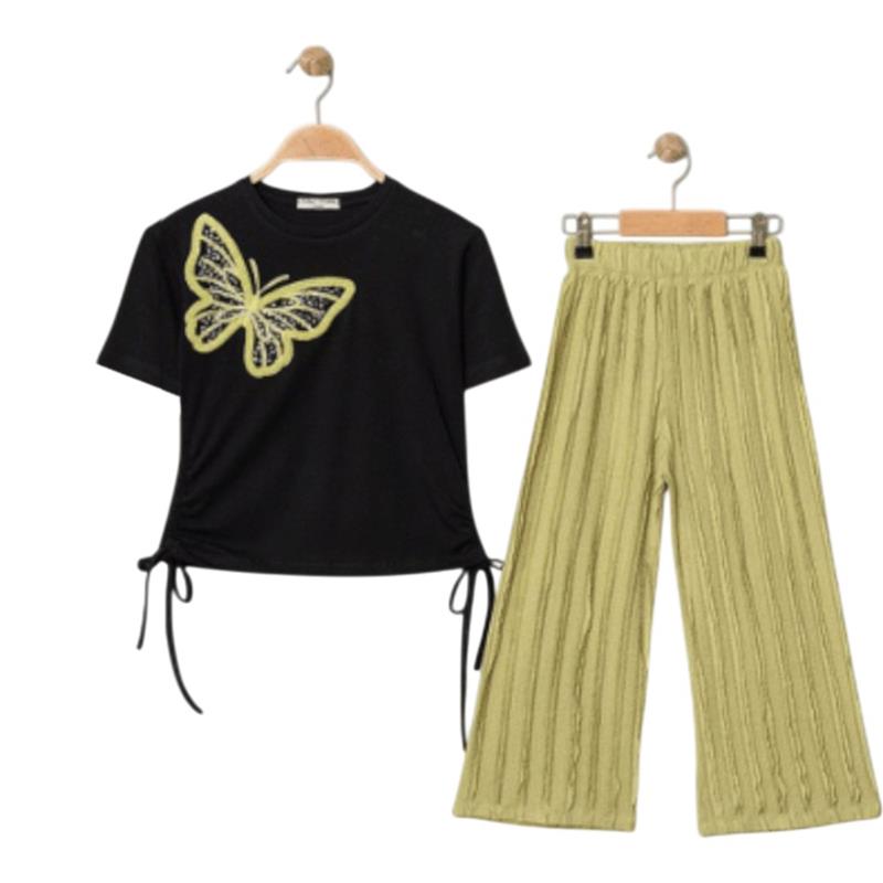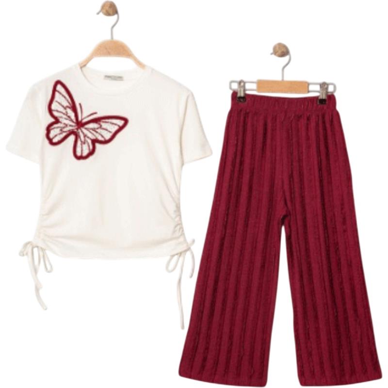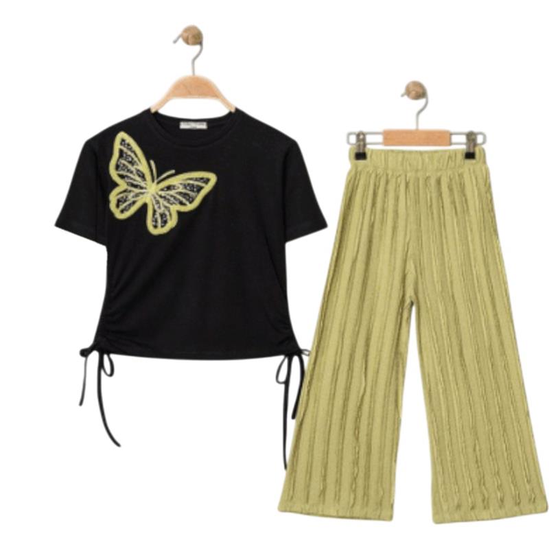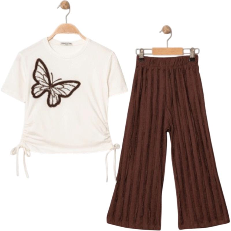 7340 Wholesale summer two-piece set for girls aged 5-8: T-shirt with butterflies and trousers