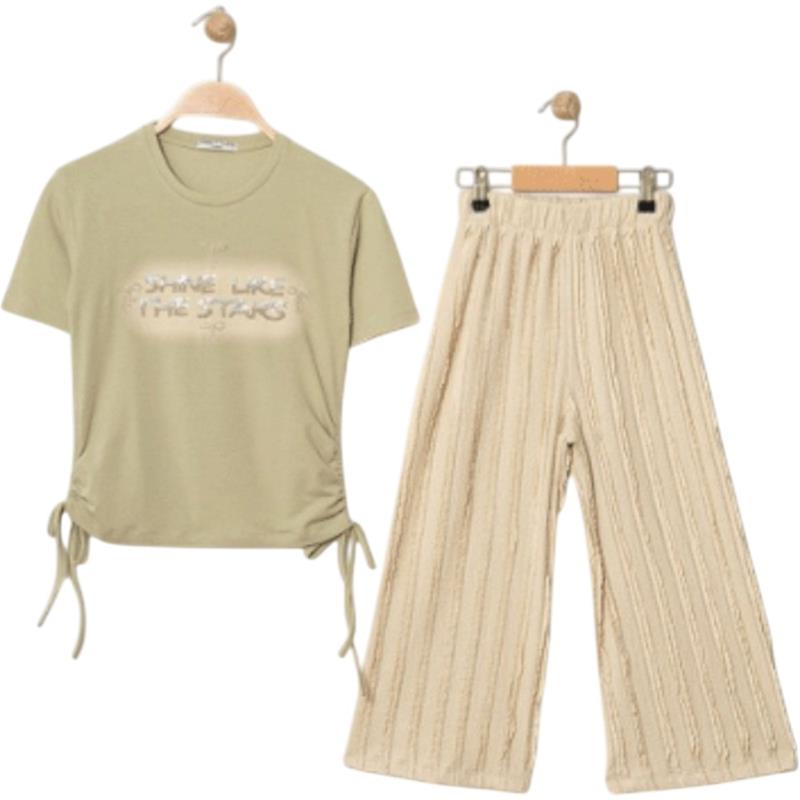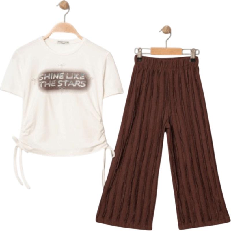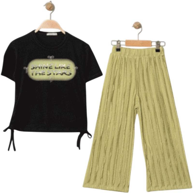 8341 Wholesale Summer Two-Piece Sets for Girls Age 9-12 Including SHINE Print T-Shirts and Trousers