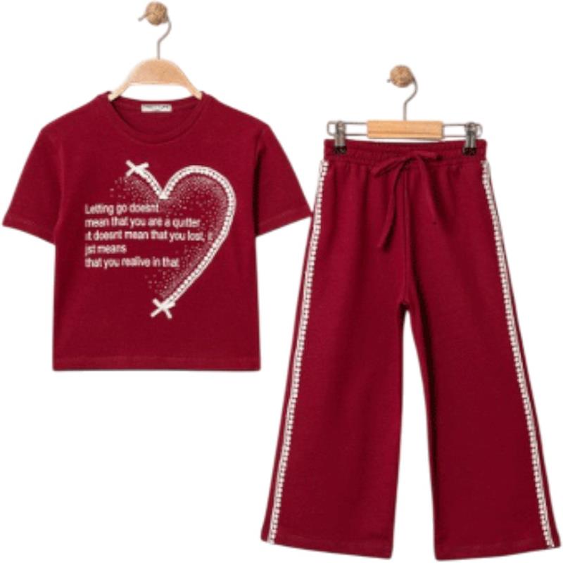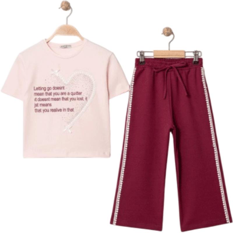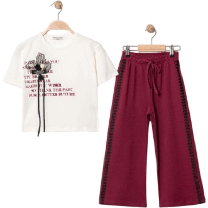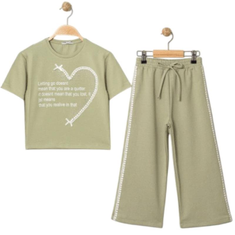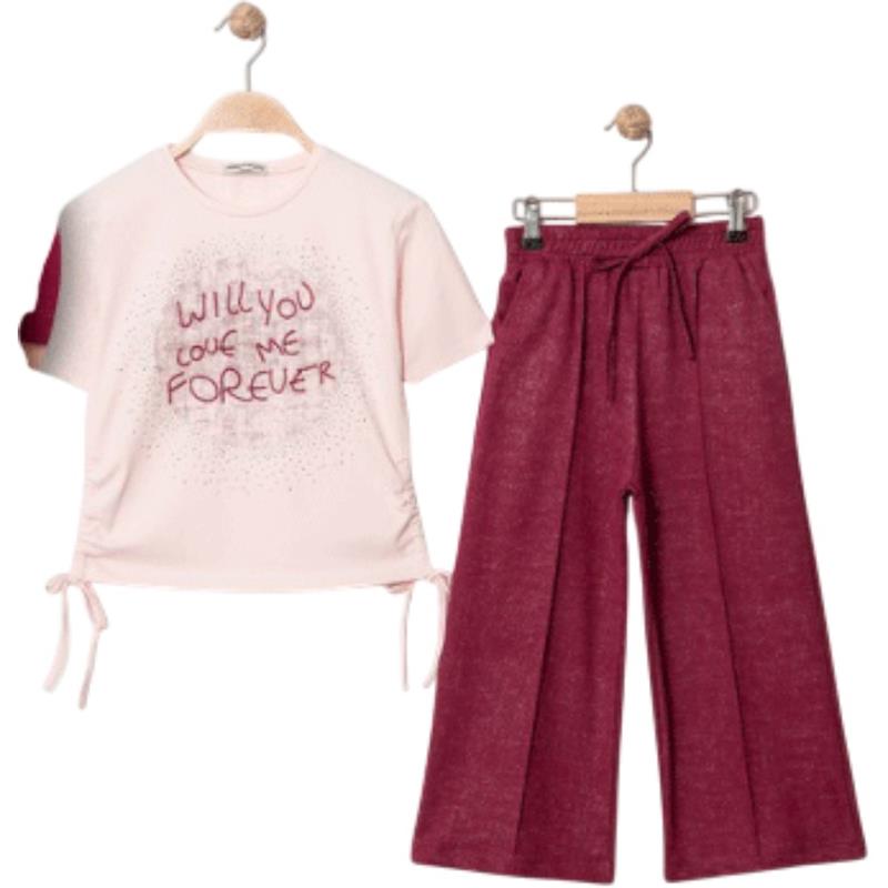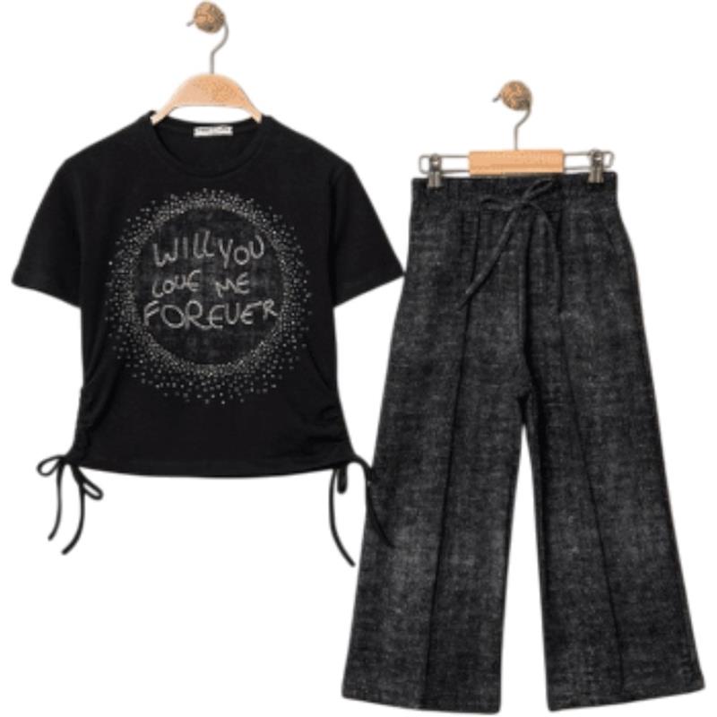 8329 wholesale children's summer two-piece suits, T-shirts with WİLL YOU print and trousers for girls aged 9/12 years