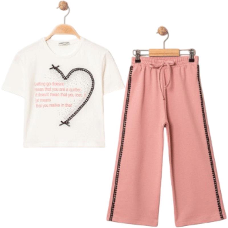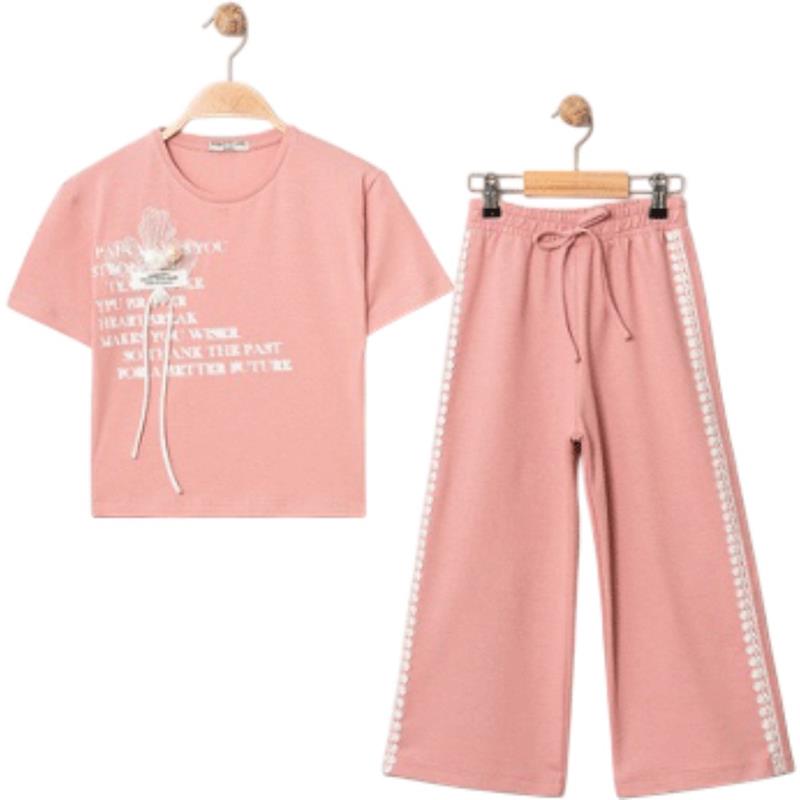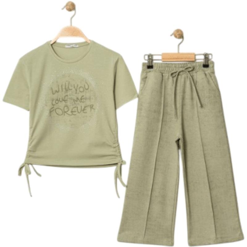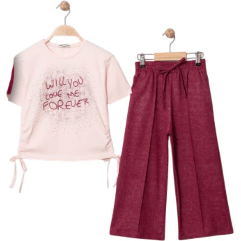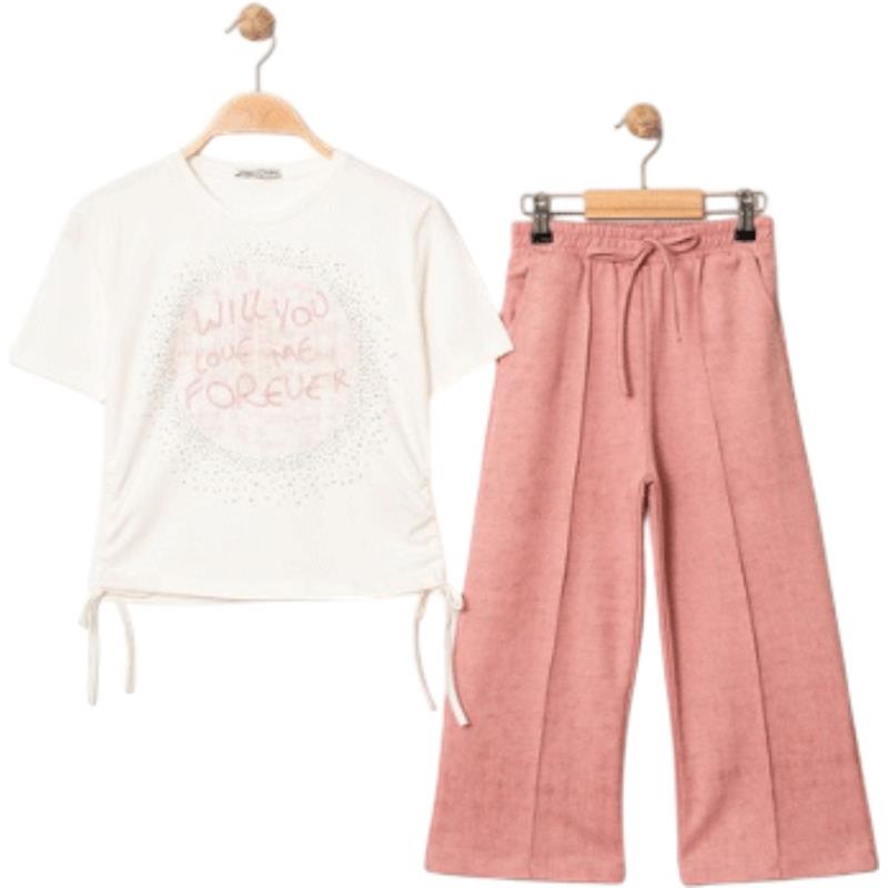 7329 wholesale children's summer two-piece suits, T-shirts with WİLL YOU print and trousers for girls aged 5/8 years