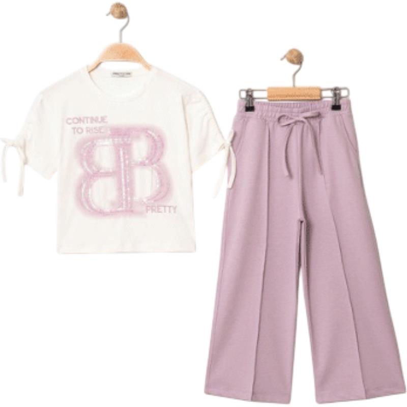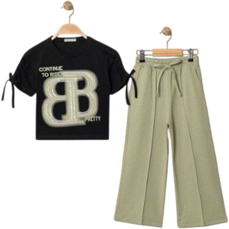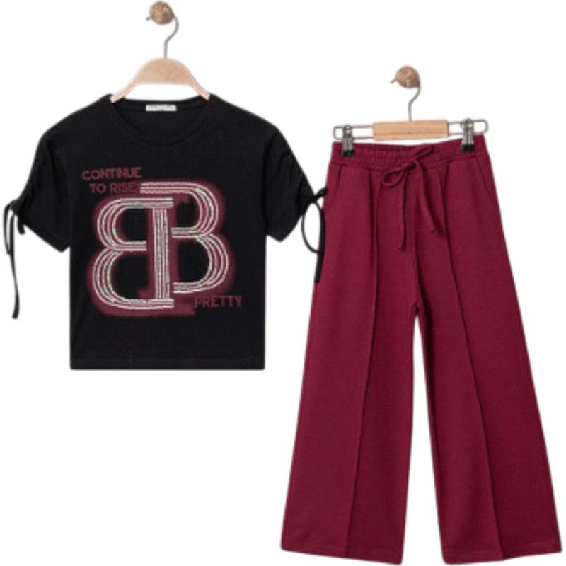 8334 wholesale children's summer two-piece suits, T-shirts with BB print and trousers for girls aged 9/12 years