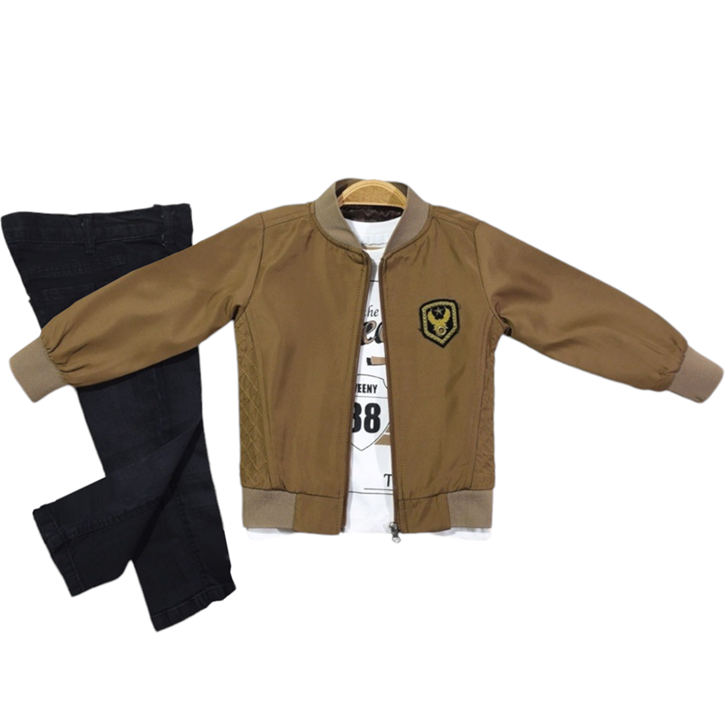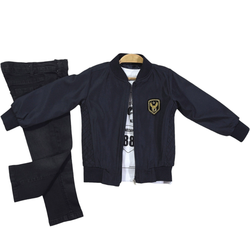 1589 الجملة الأطفال الربيع والخريف ثلاث قطع الدعاوى ، سترة مع تي شيرت و سراويل جينز للأولاد الذين تتراوح أعمارهم بين 2/5