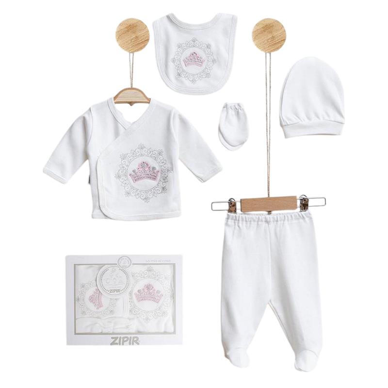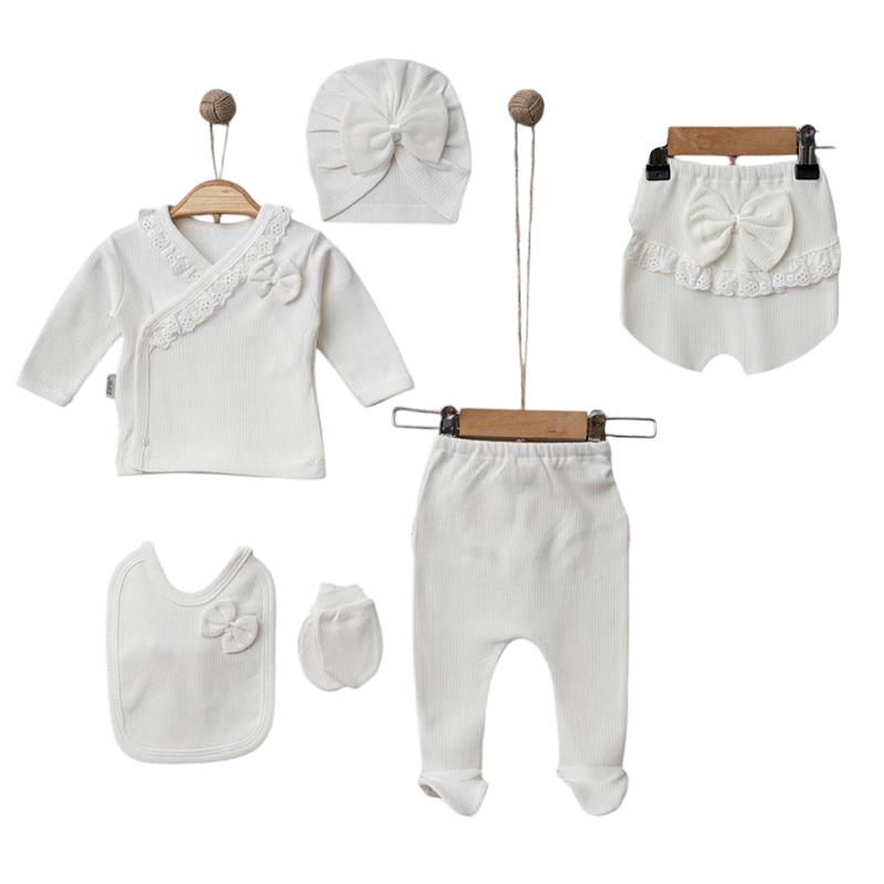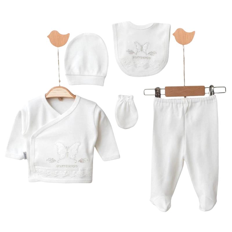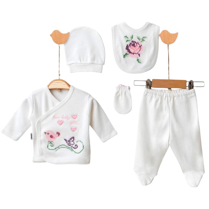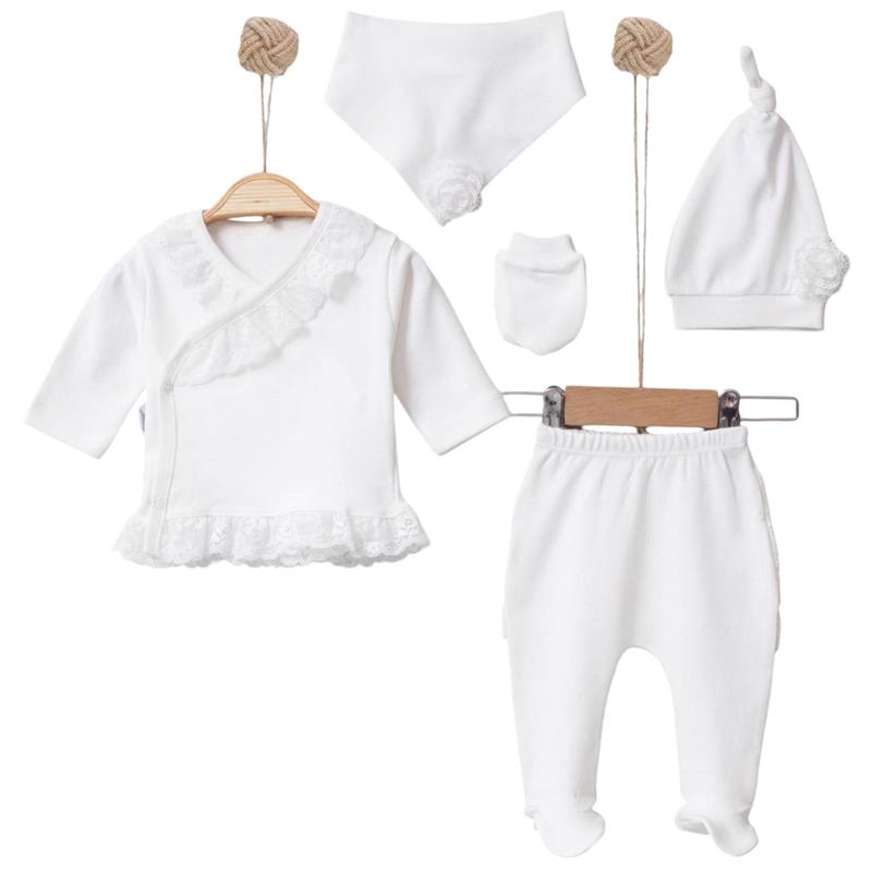579 white color newborn baby girl set wholesale - 5 pieces in box