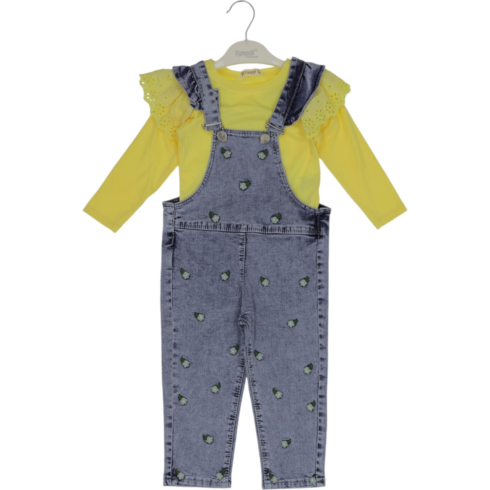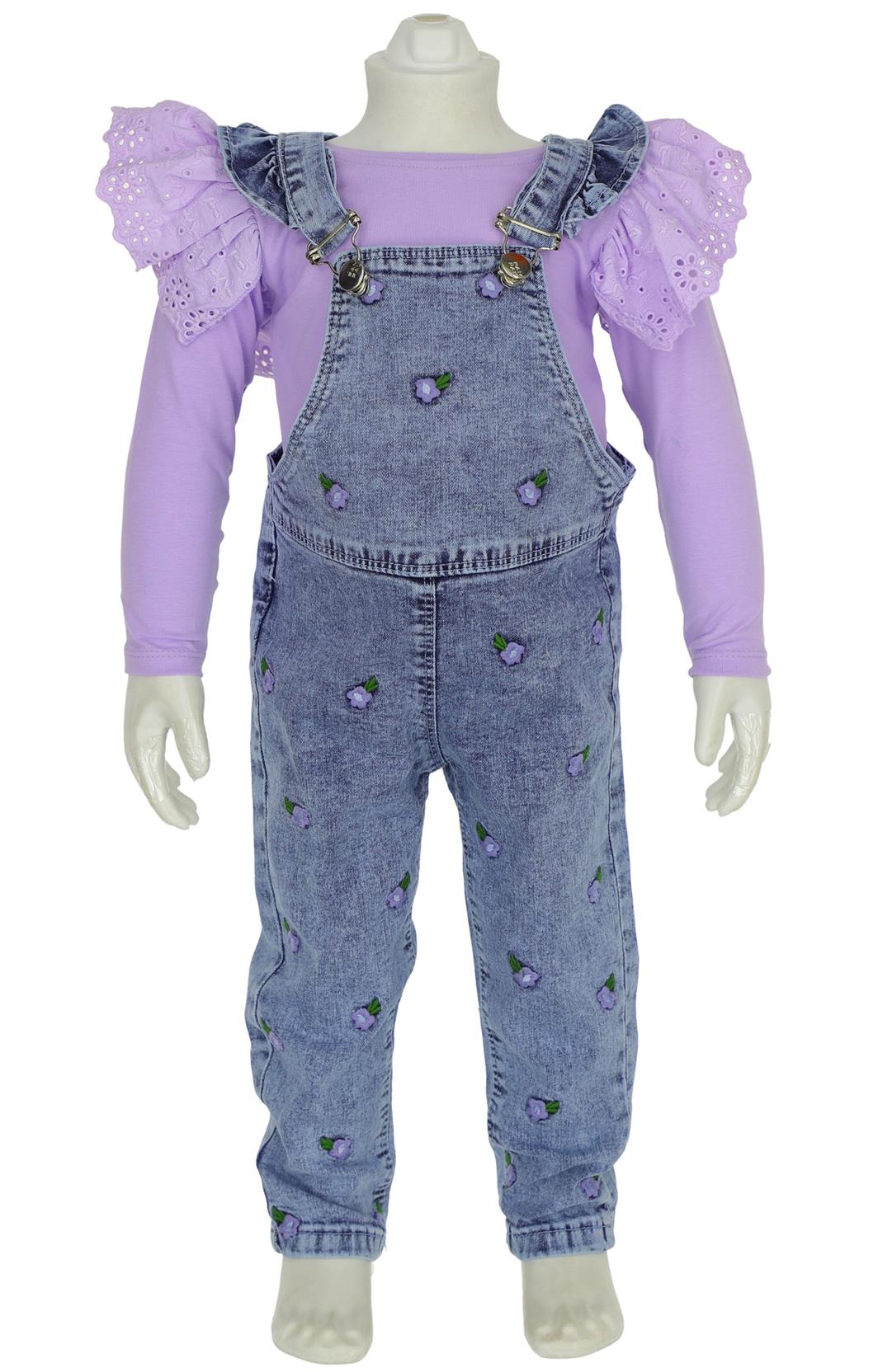 6237 girls overalls gardener suit wholesale 2/5 age - girls denim suits wholesale, kids jeans suits.