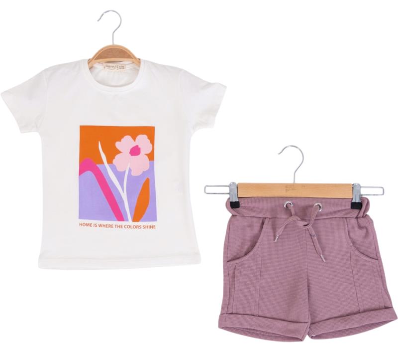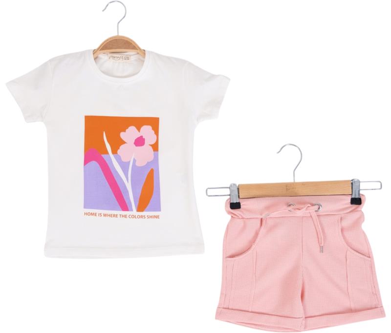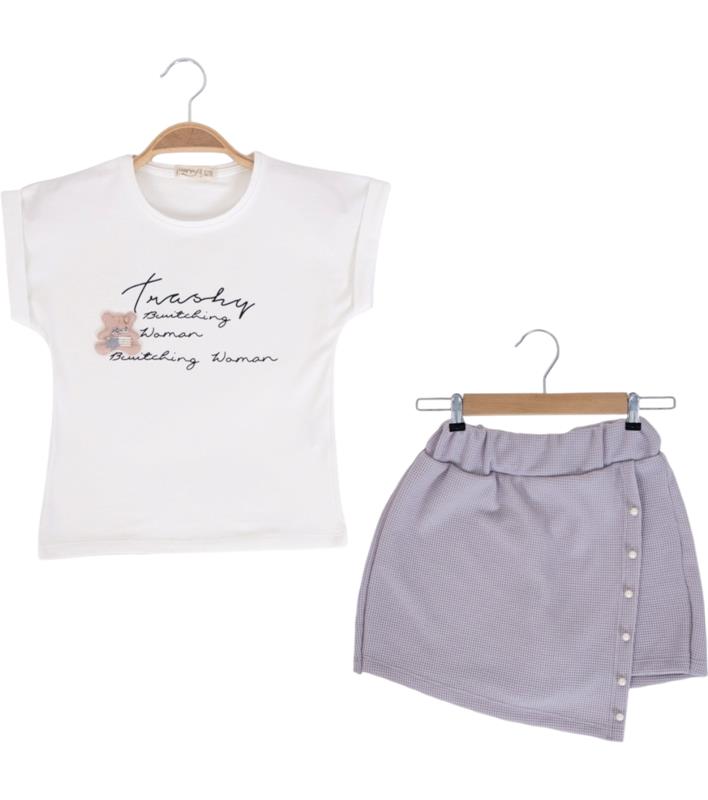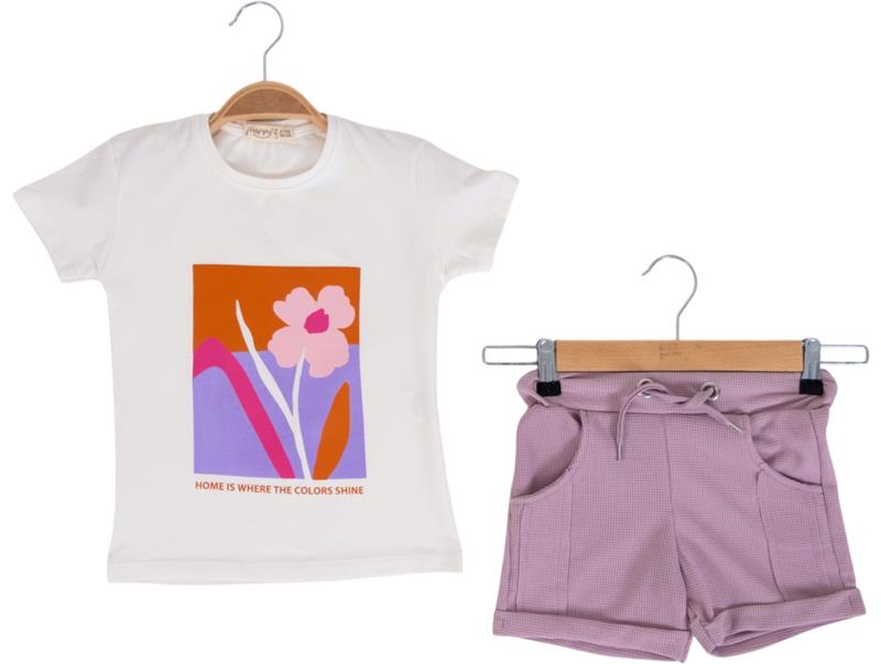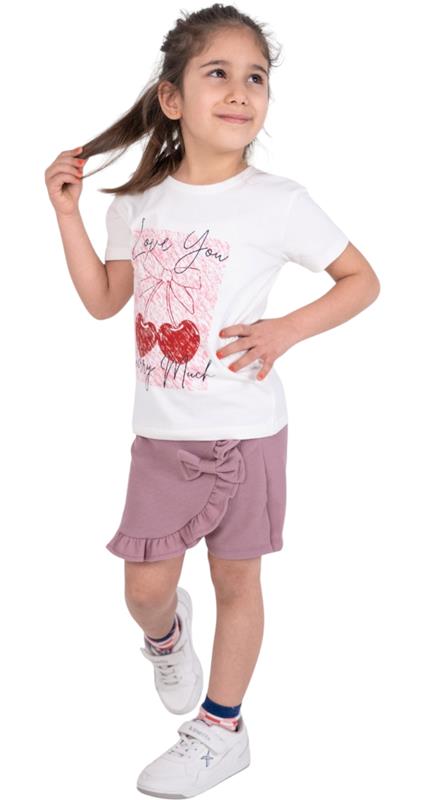 12208 оптом детские летние костюмы двойки,блузка с джинсовыми шортами и сумочкой для девочек на 2/5 лет