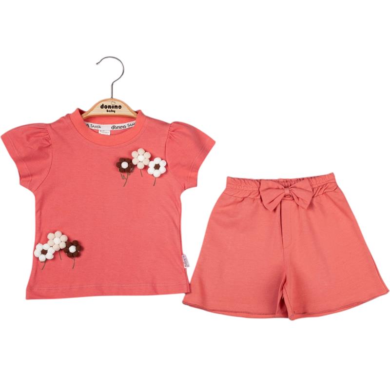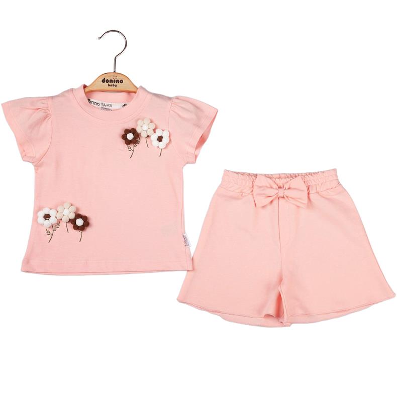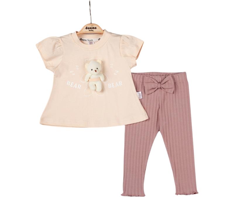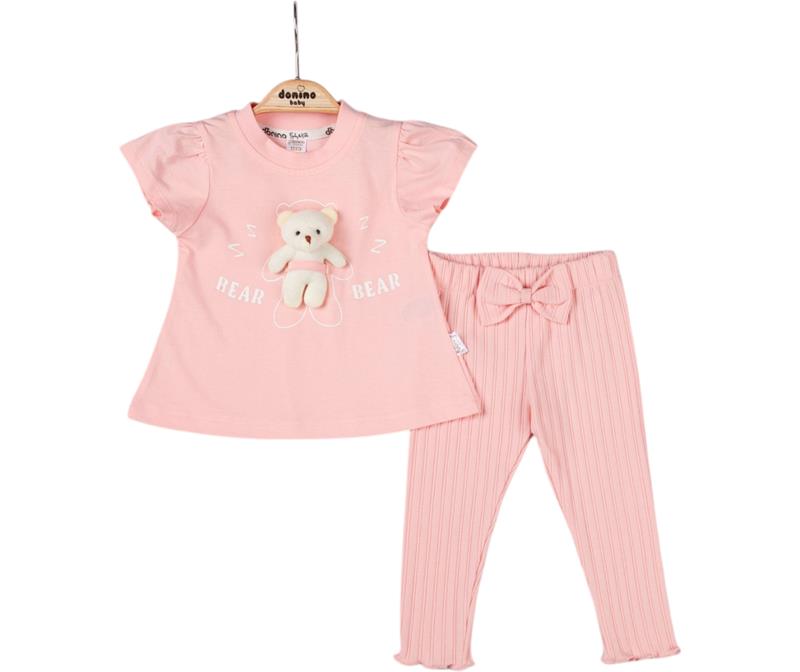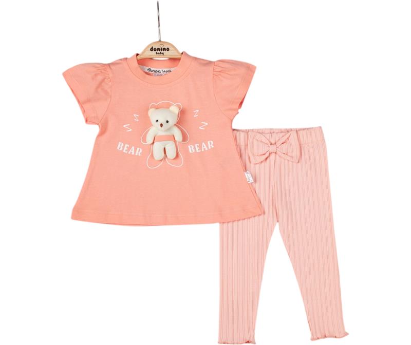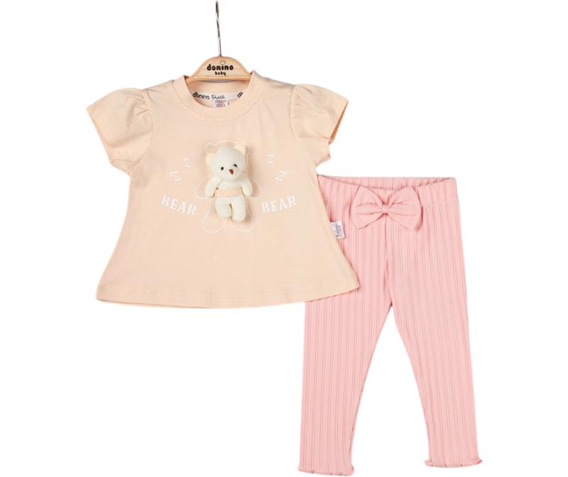 8360 оптом летние детские комплекты двойки с медвежонком для девочек на 9/24 месяцев