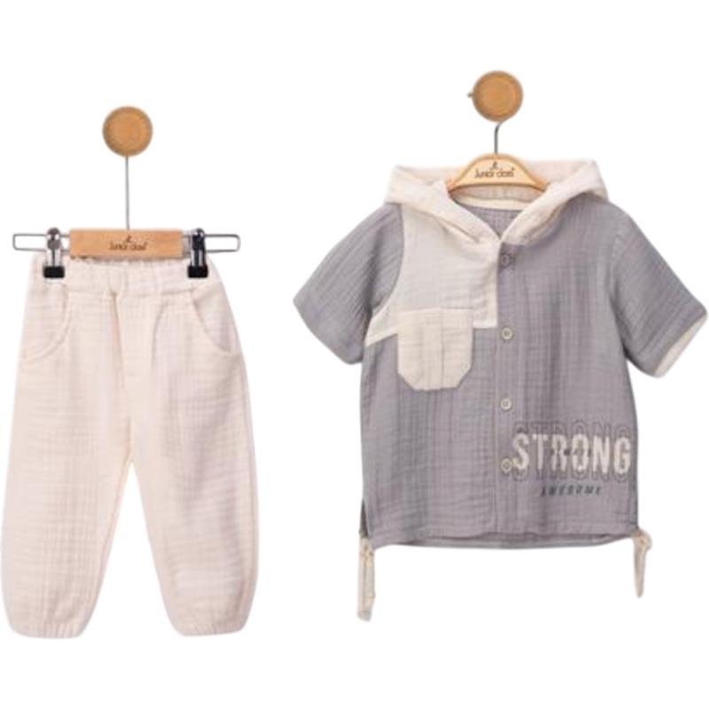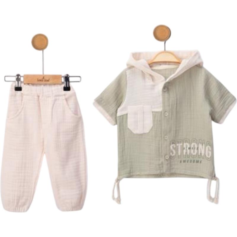 2600 Оптовая продажа летних комплектов из двух предметов: рубашки с капюшоном и шорты для мальчиков в возрасте от 9 до 24 месяцев