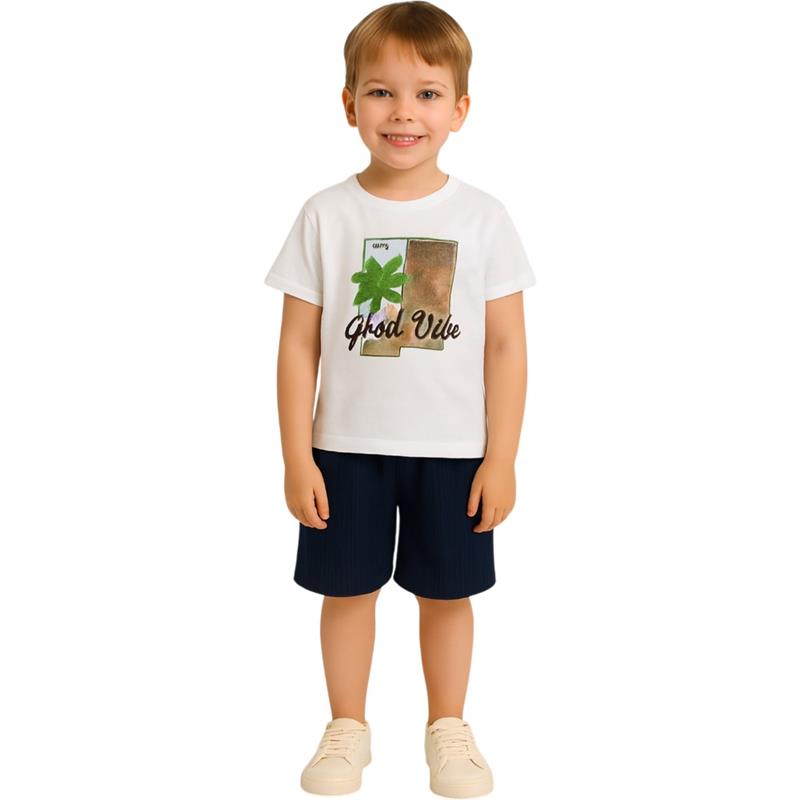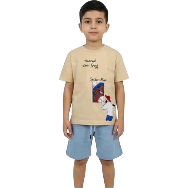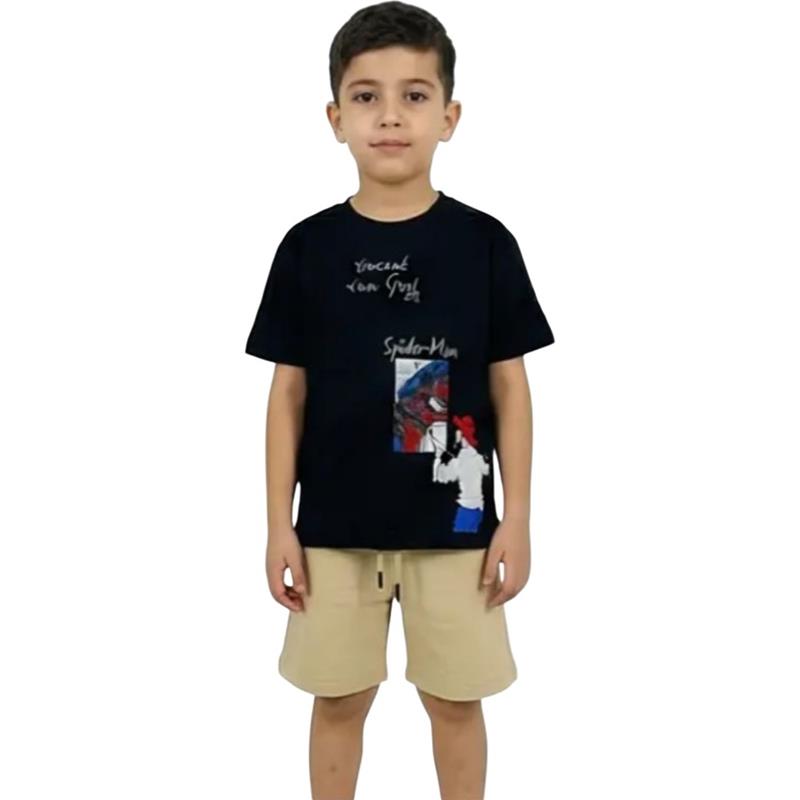 80115 Оптовая продажа летнего комплекта одежды из двух предметов для мальчиков 2-9 лет, включающего футболку и шорты