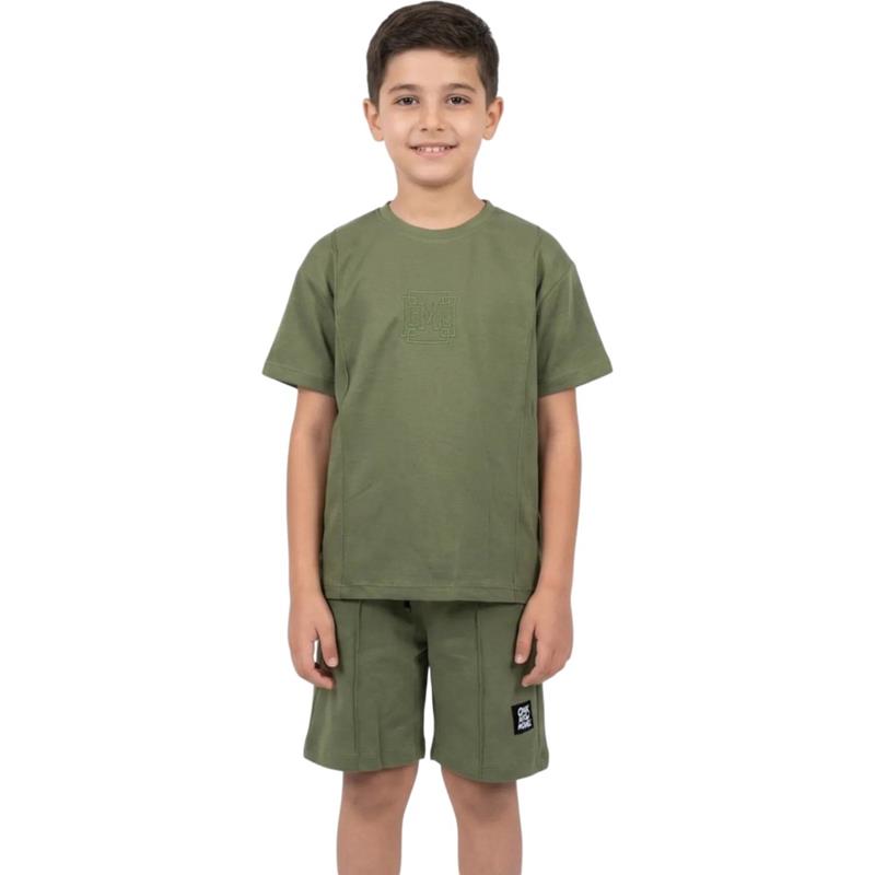 80710 Оптовая продажа летних комплектов одежды из двух частей для мальчиков 11-15 лет, включающих футболку и шорты.