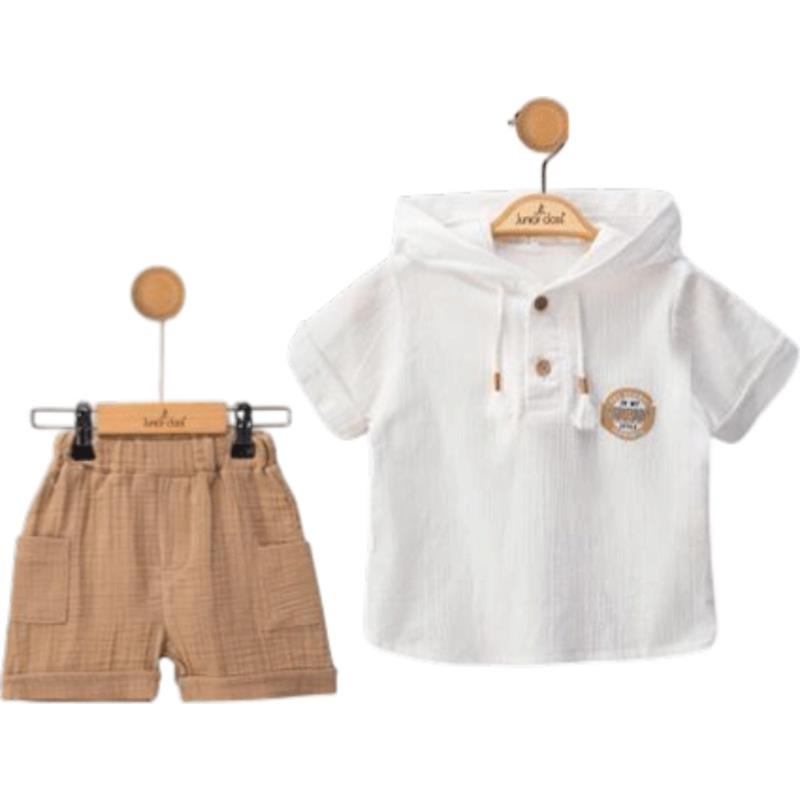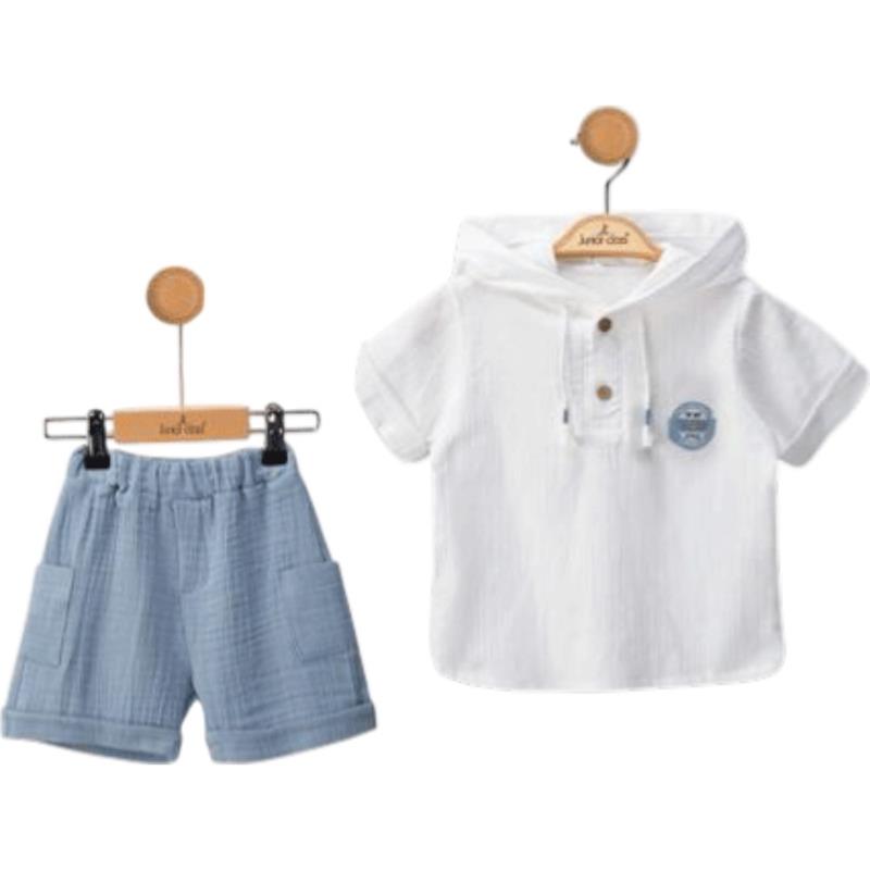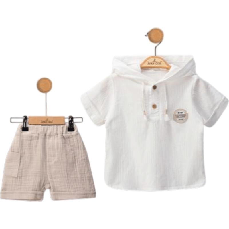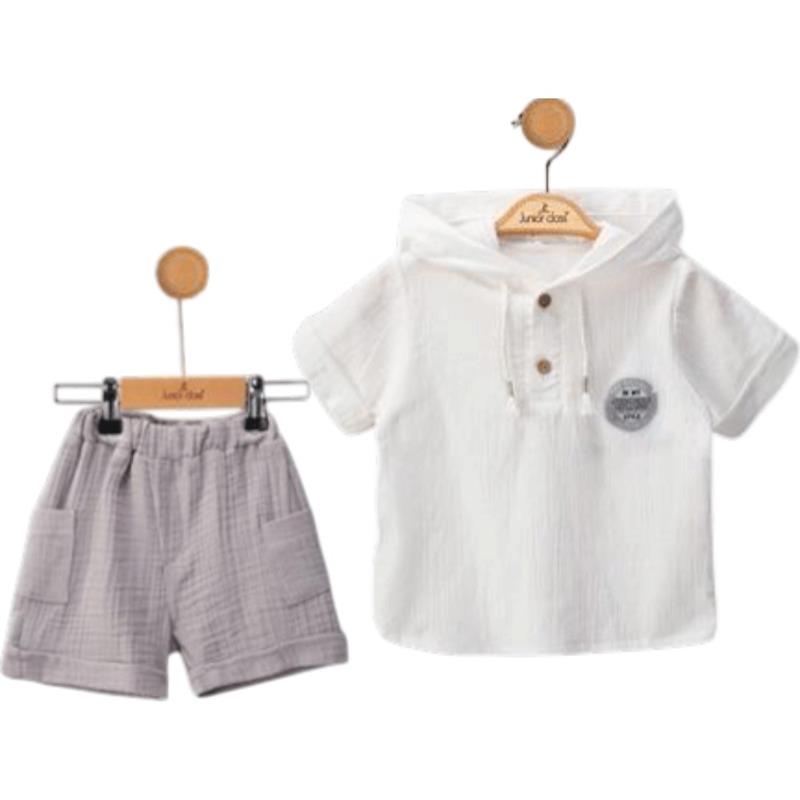 2600 Оптовая продажа летних комплектов из двух предметов: рубашки с капюшоном и шорты для мальчиков в возрасте от 9 до 24 месяцев
