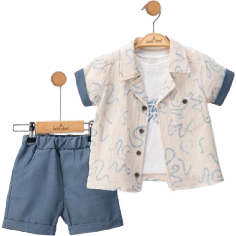 2605 оптом детские летние костюмы тройки,рубашки,футболки с шортами для мальчиков на 9/24 месяцев