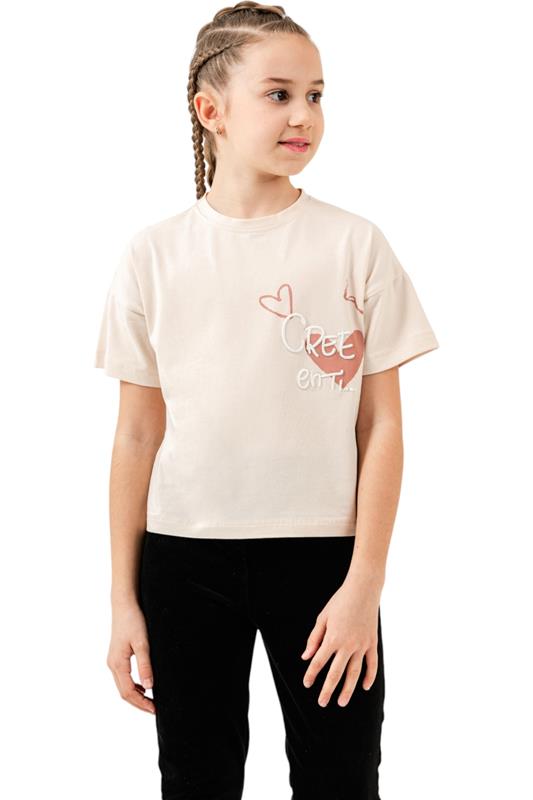 12084 kalp baskı kız tişört toptan 5/8 yaş imalat firma