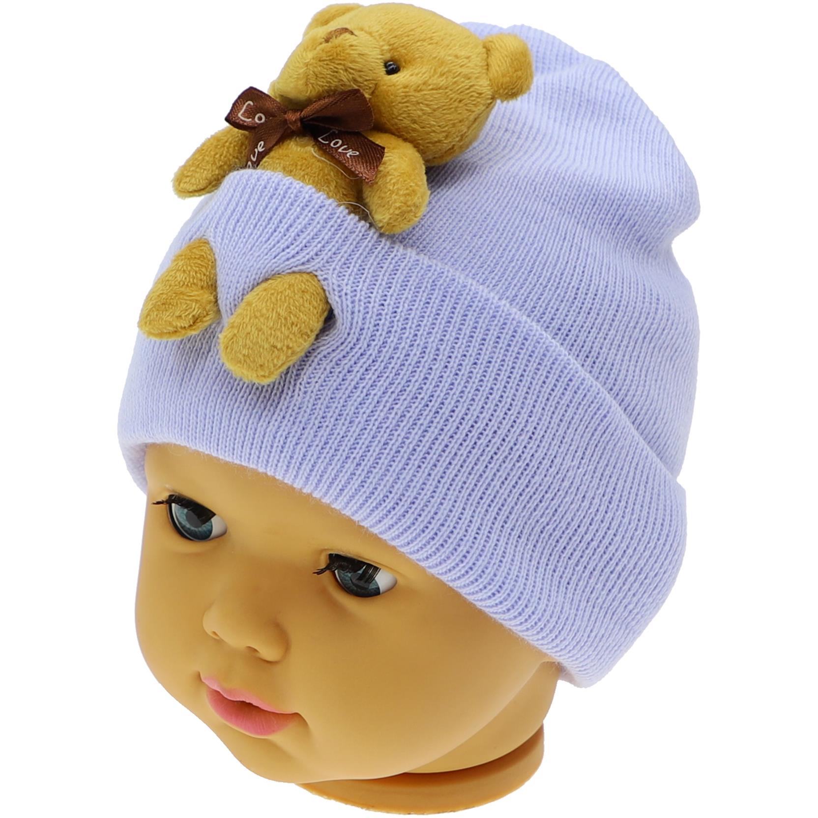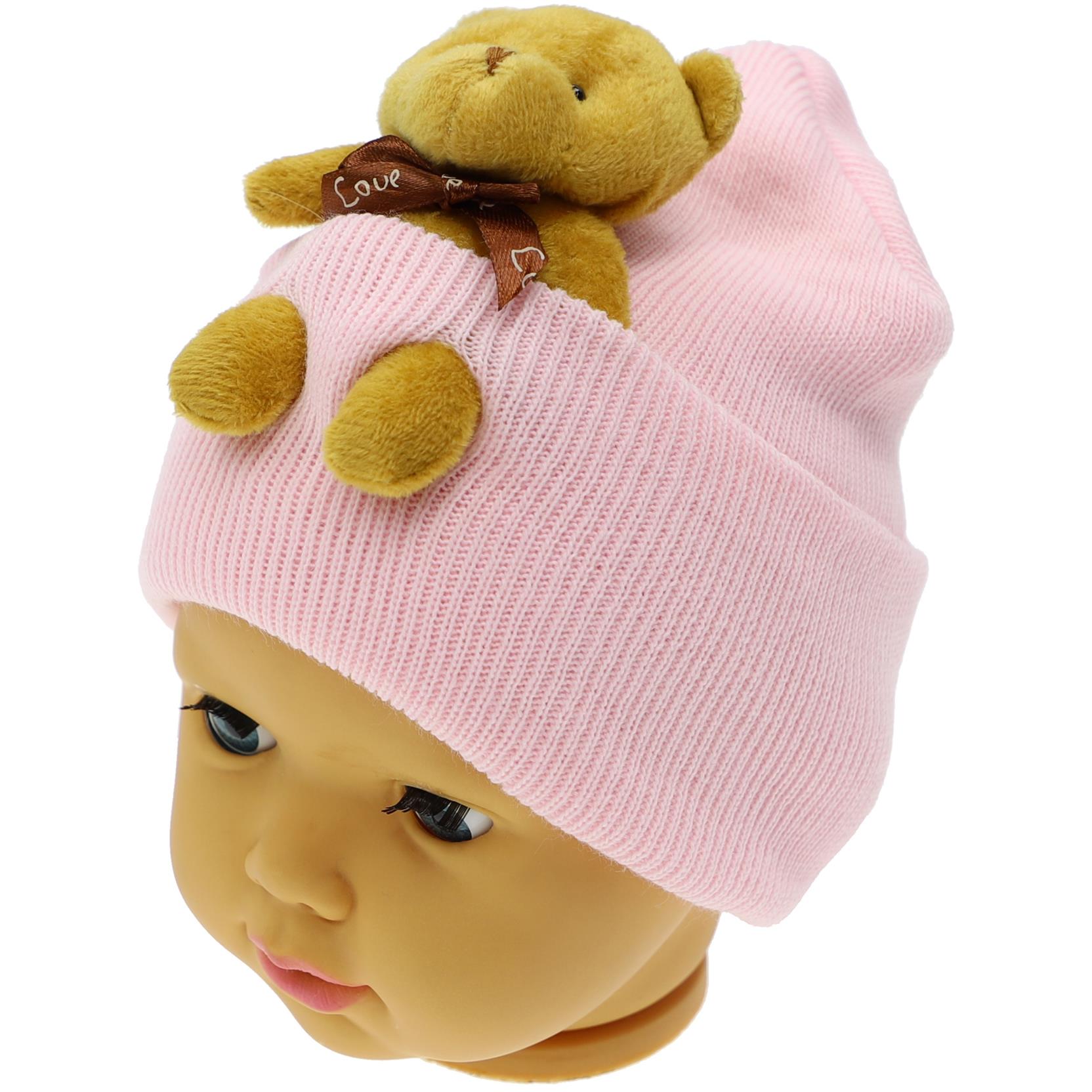 детская шапочка с игрушкой-мишкой оптом (В одной упаковке 12 штук)