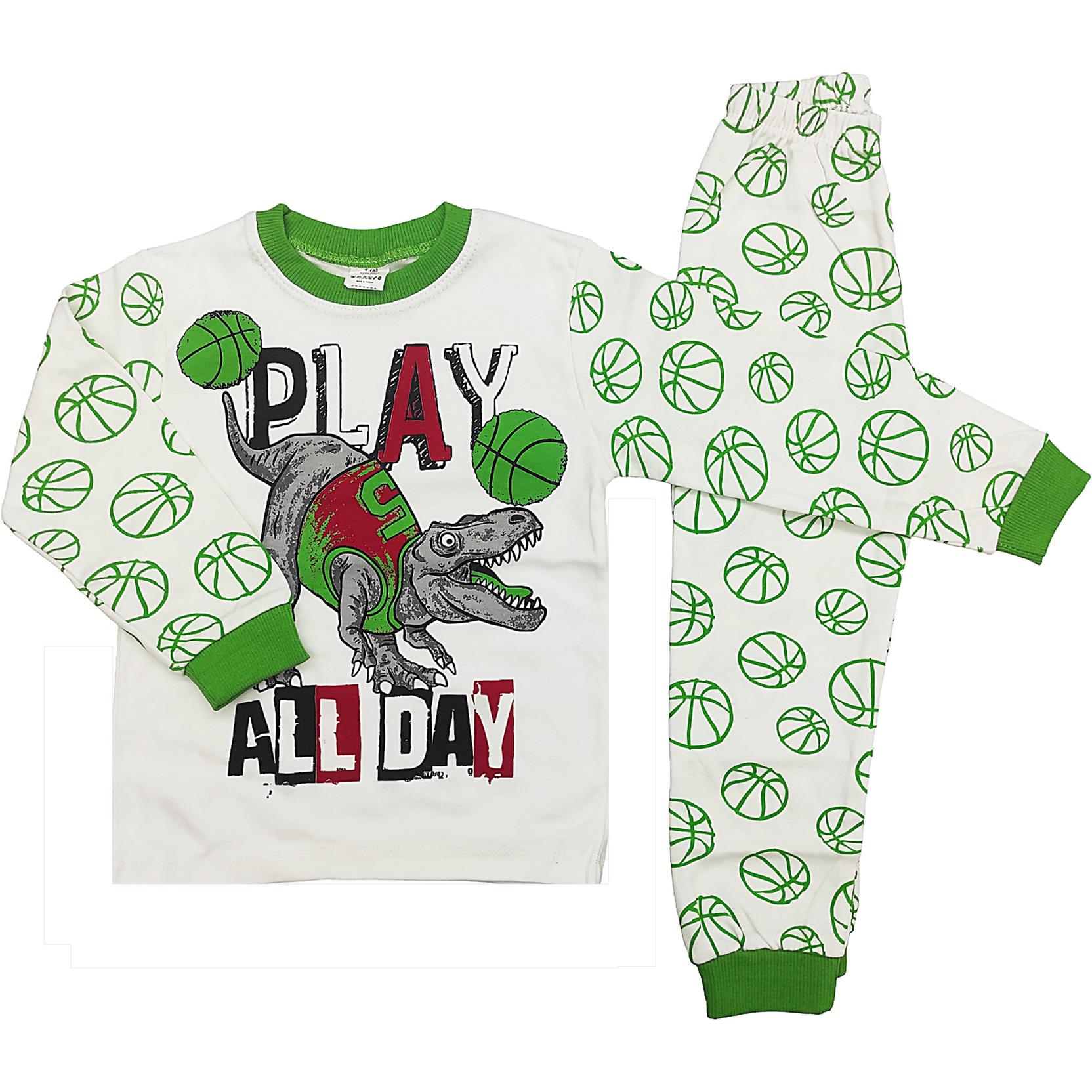 3685 оптом детские демисезонные пижамы с принтом динозавра с мячом для мальчиков на 4-5-6 лет
