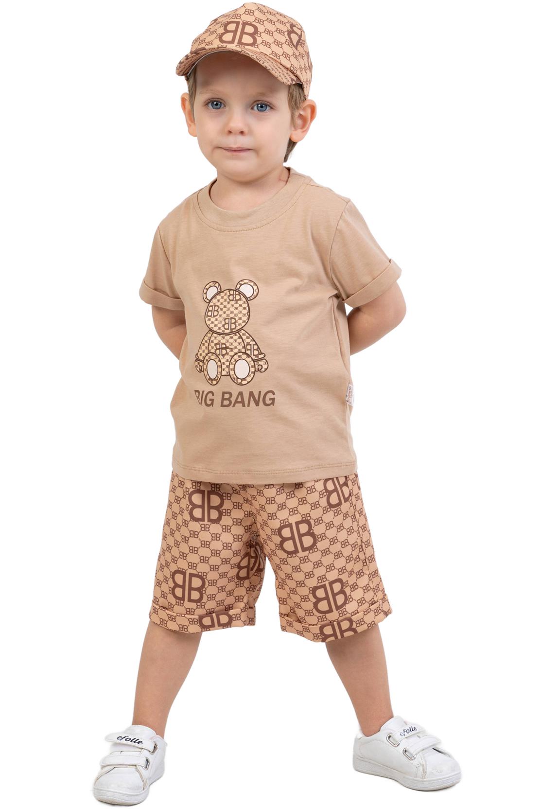 40791 оптом детские летние костюмы двойки,футболки,шорты с кепкой для мальчиков на 2/5 лет