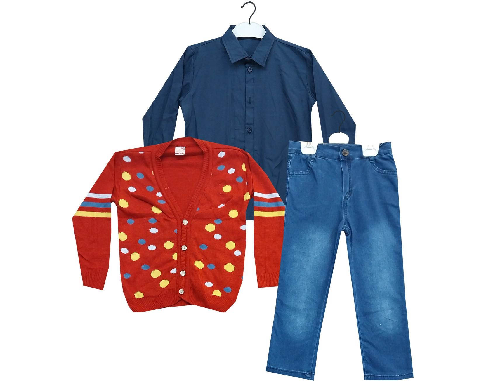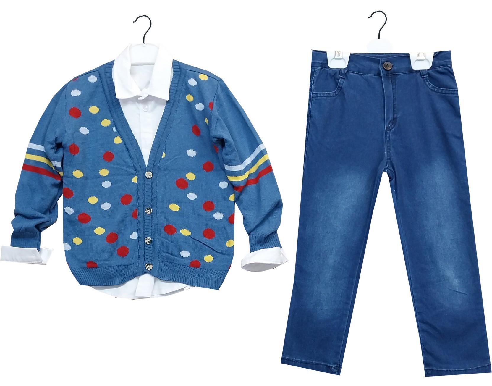 7773 оптом детские зимние костюмы-тройки,жакеты+рубашки+джинсовые брюки для мальчиков на 2-3-4-5 лет