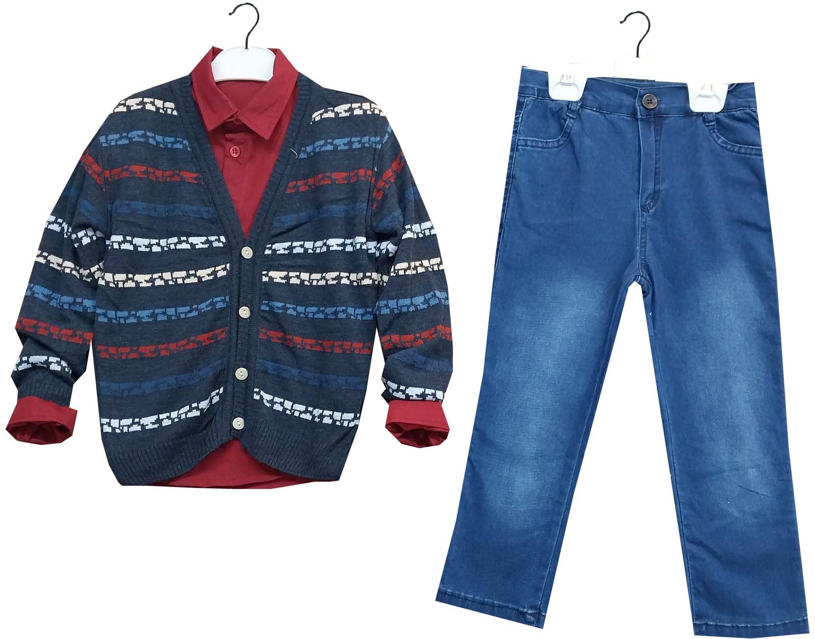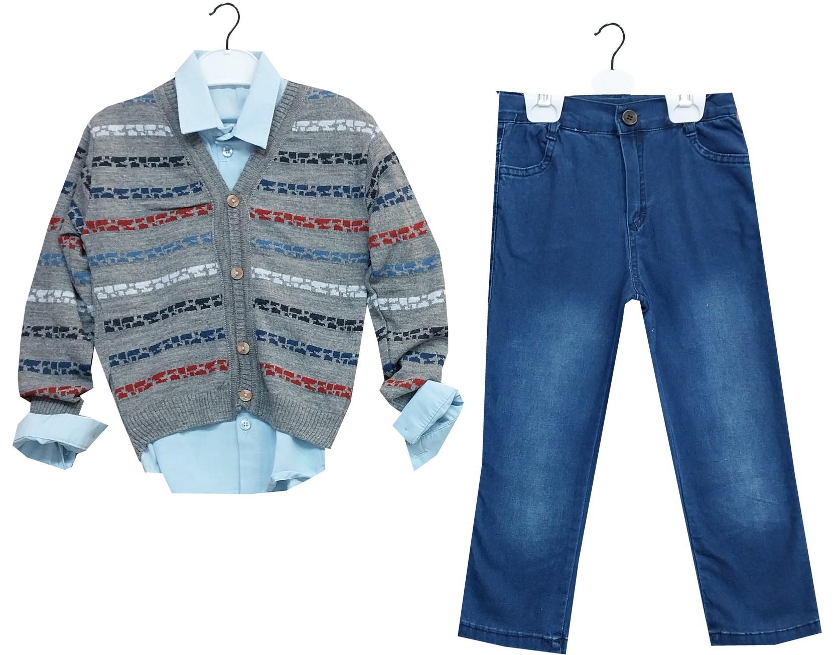 7774 оптом детские зимние костюмы-тройки,жакеты вязанные+рубашки+джинсовые брюки для мальчиков на 2-3-4-5 лет