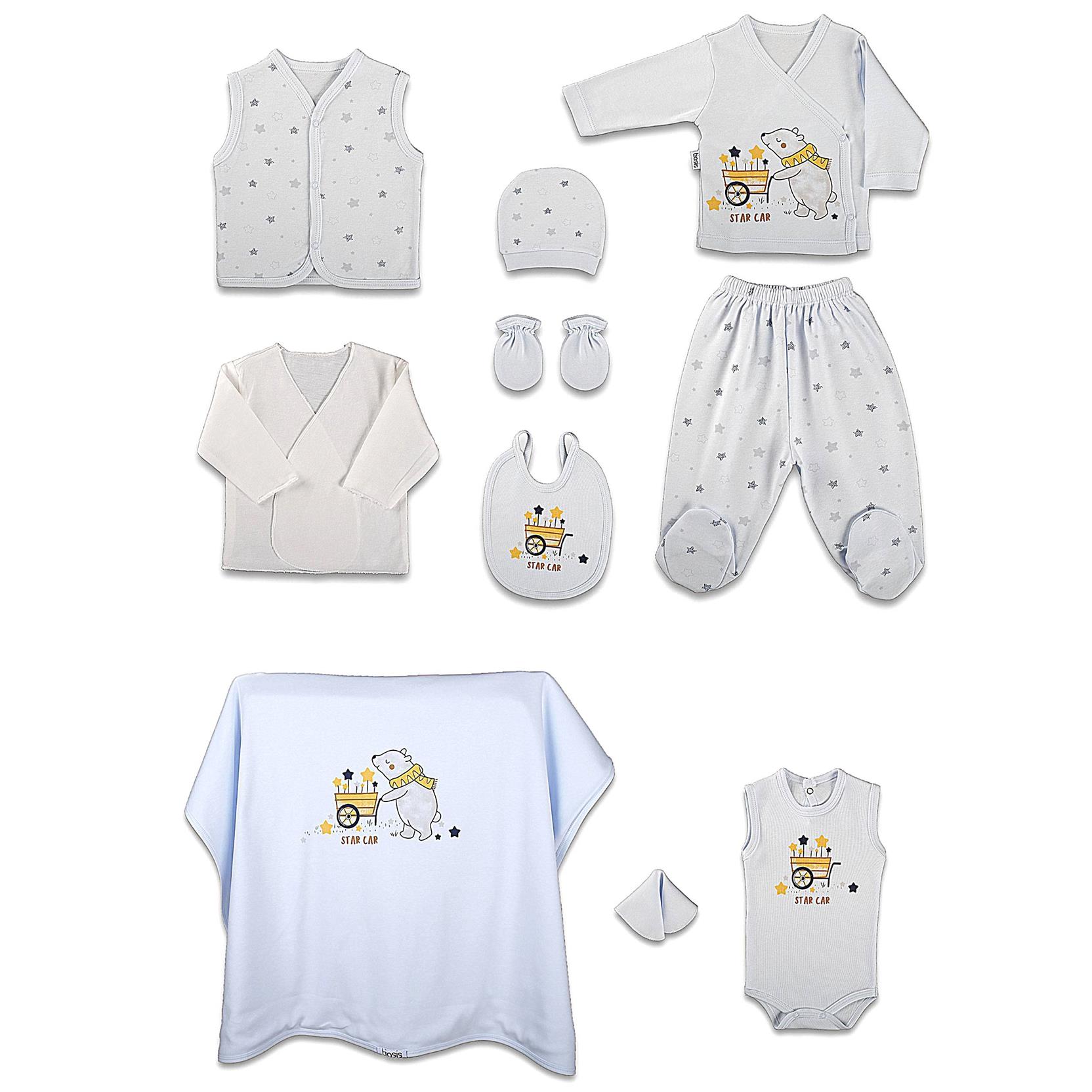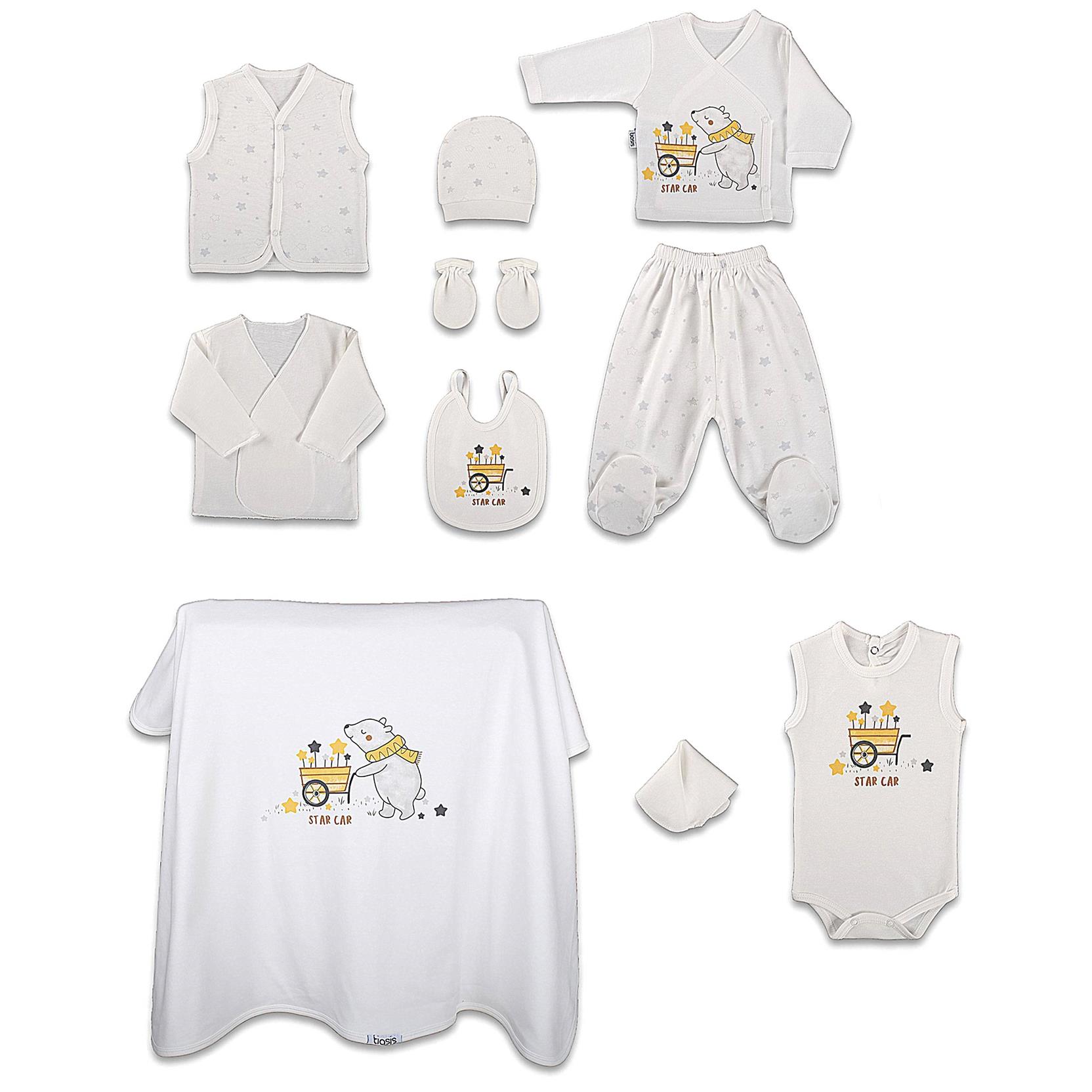 T-1386 оптом детские комплекты на выписку из десяти предметов в коробке