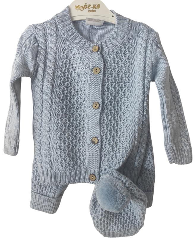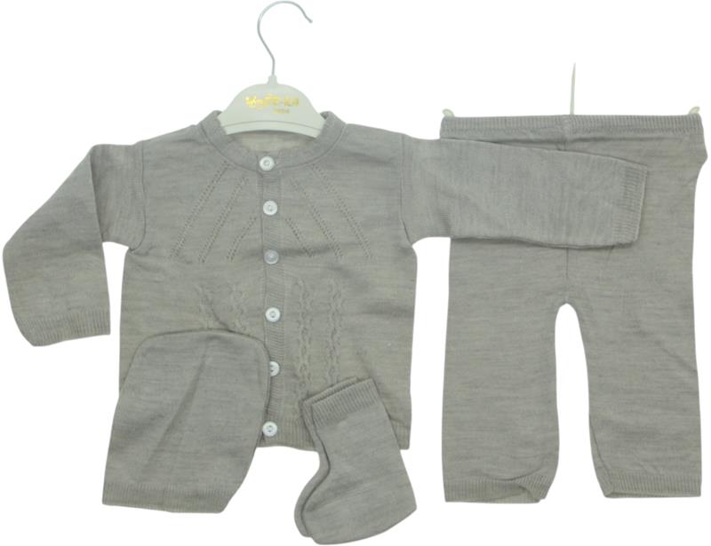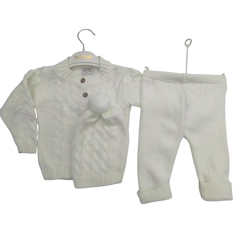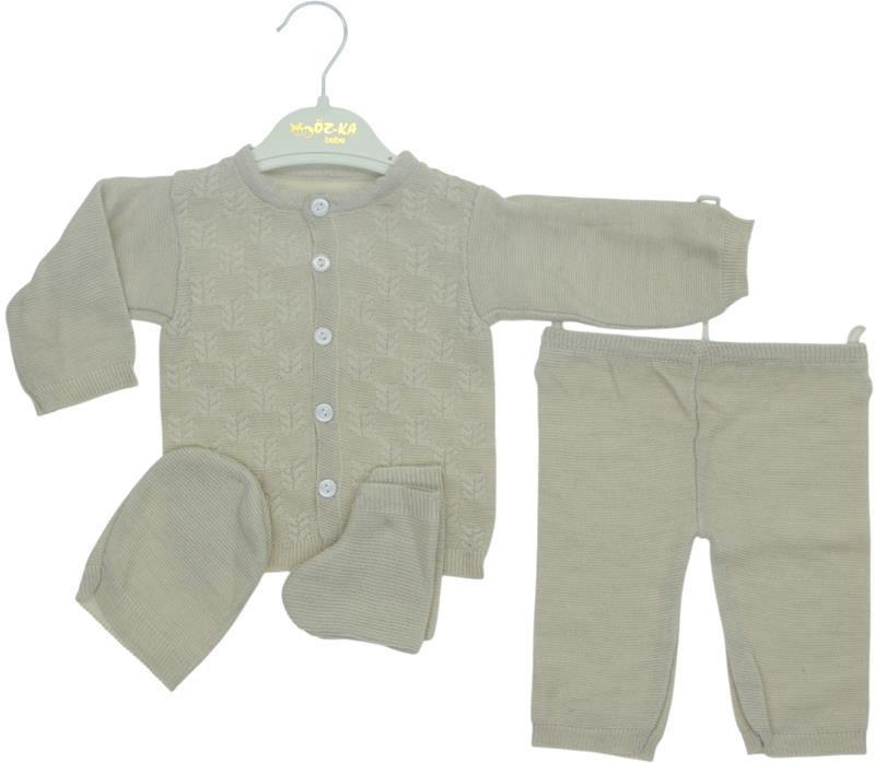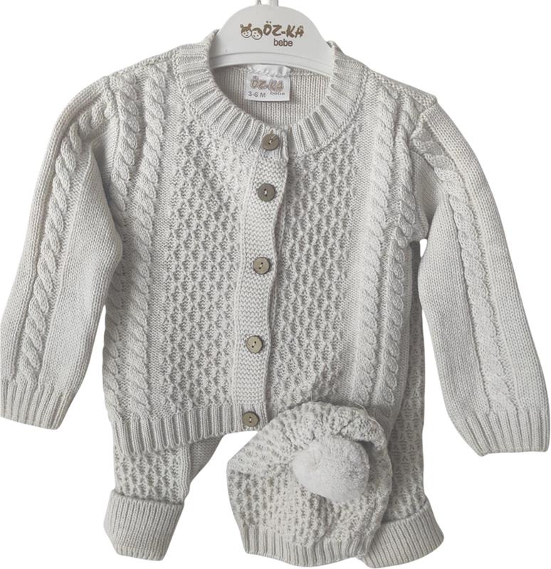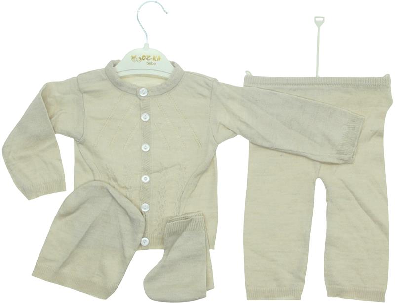 3105 toptan şapkalı çoraplı triko ikili bebe takım 3-6 aylık