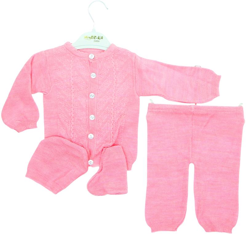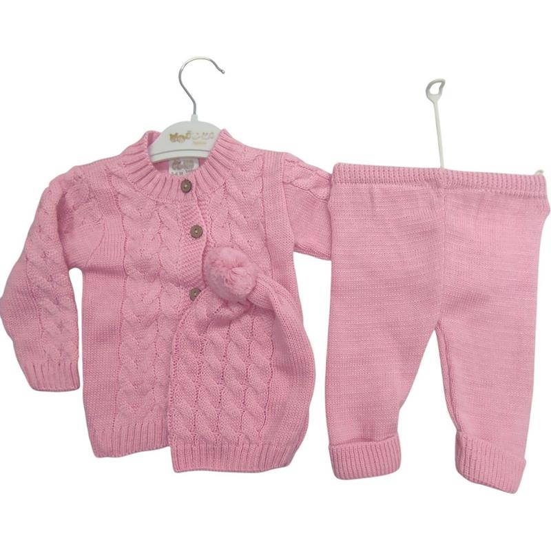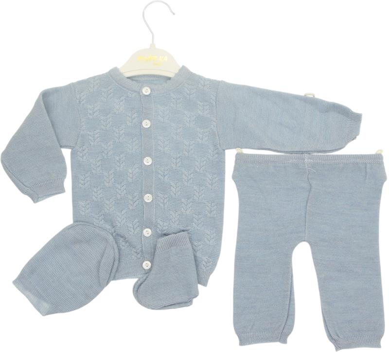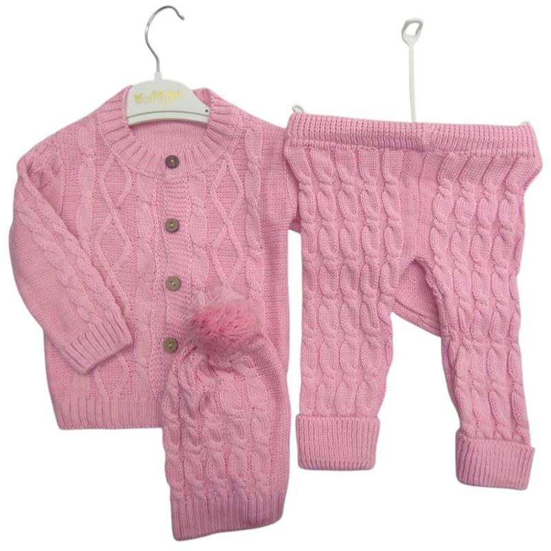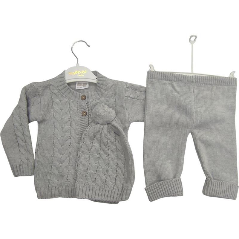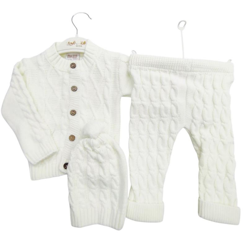 5201 toptan 3-6-9 aylık çocuklar için şapkalı triko ikili takım