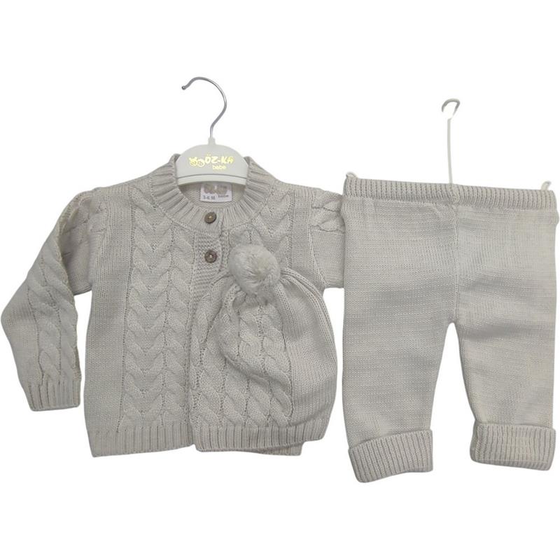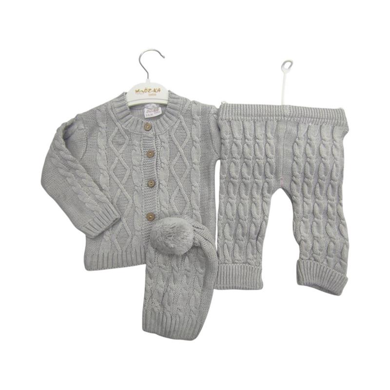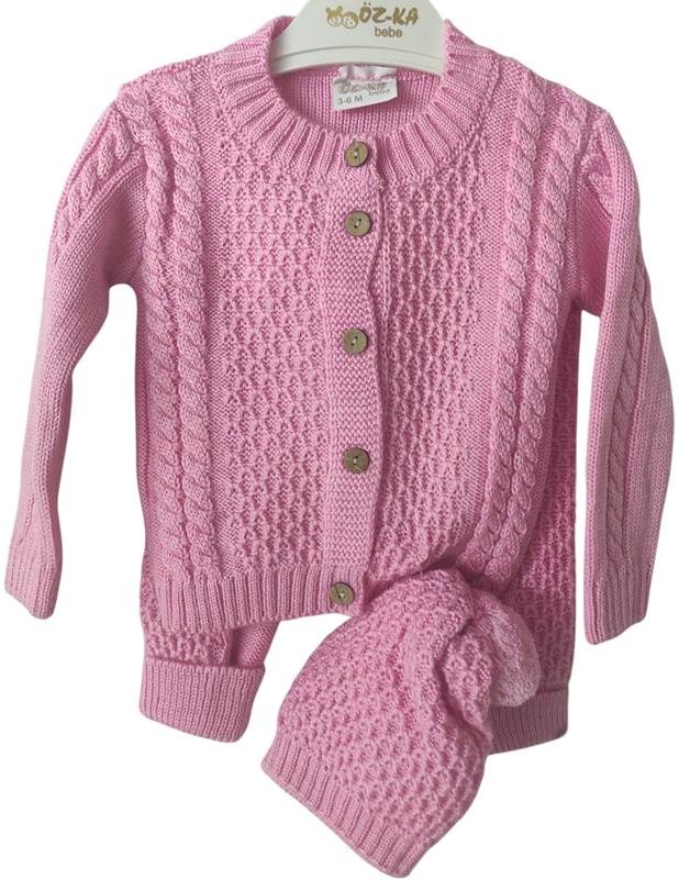5204 toptan 3-6-9 aylık bebekler için mevsimlik şapkalı triko ikili takım