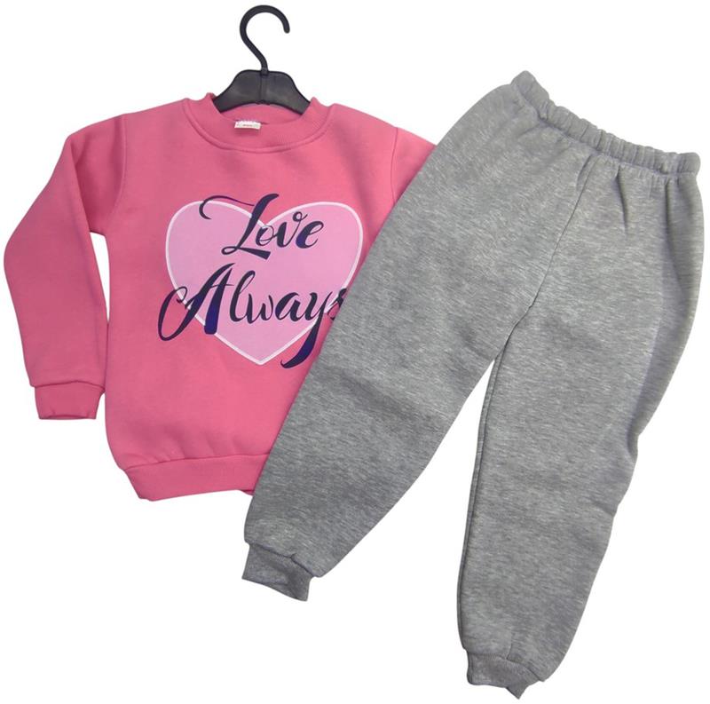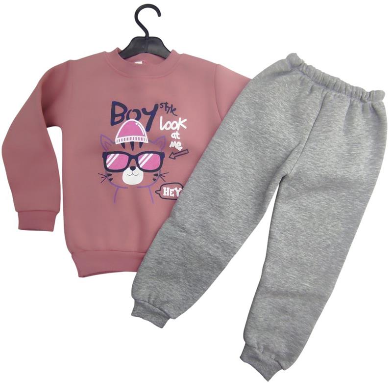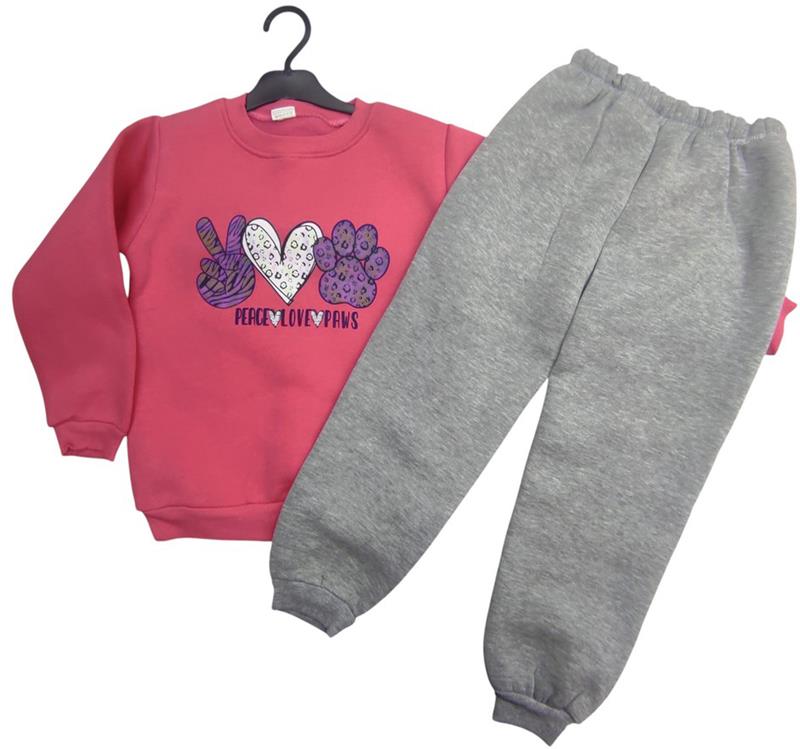 7305 toptan 5/8 yaş arası kız çocuklar için kışlık iki parçalı polarlı takım elbise