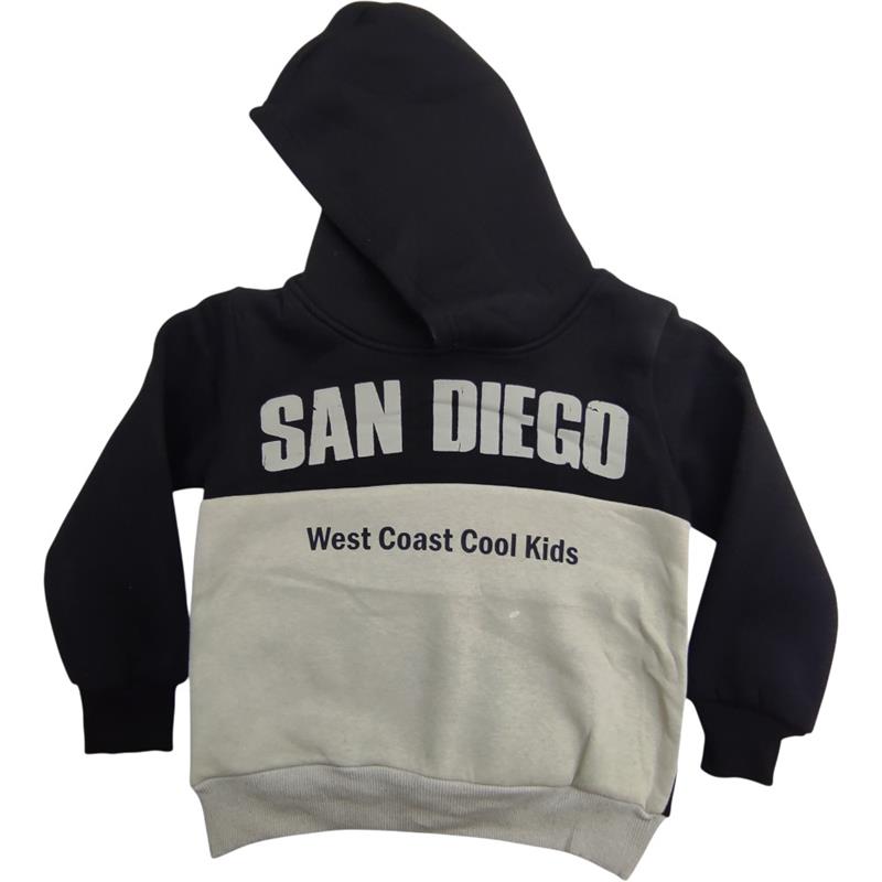 23037 toptan 6/9 yaş erkek çocuklar için SAN DIEGO baskılı kışlık kapüşonlu sweatshirt