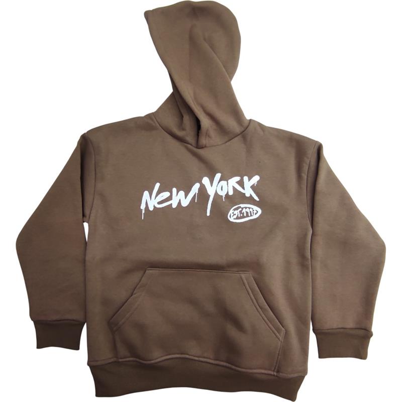 23085 toptan 6/9 yaş erkek çocuklar için NEW YORK baskılı kışlık kapüşonlu sweatshirt