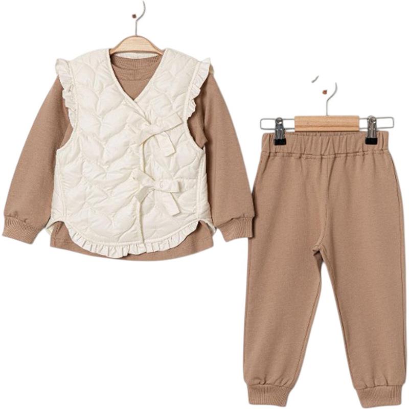 25101 toptan 9/24 aylık kız bebekler için mevsimlik yelekli üçlü takımlar