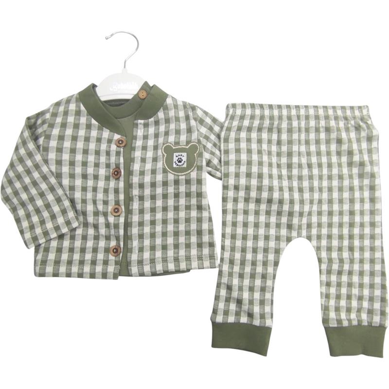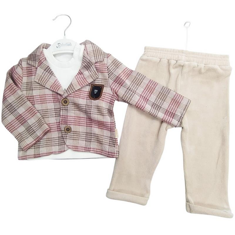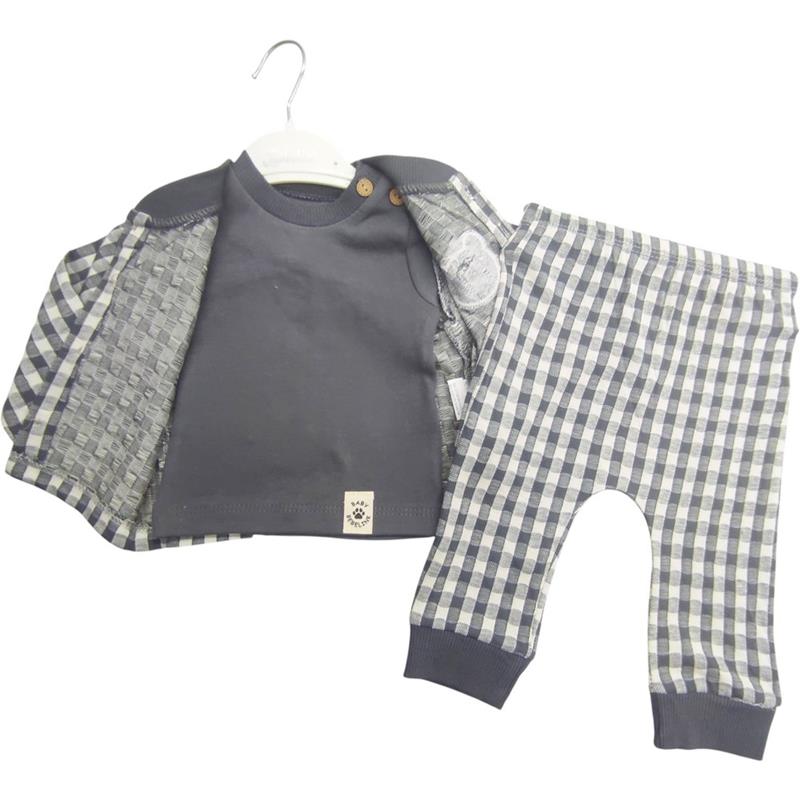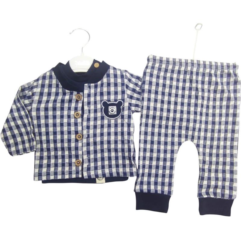 558 toptan 3-6-9 aylık bebekler için ekose üç parçalı bebek takımları