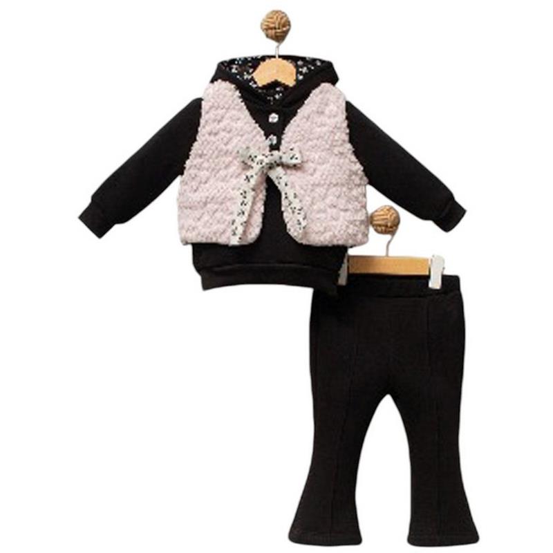 5214 toptan 6-9-12 aylık kız bebekler için kışlık yelekli üçlü takımlar