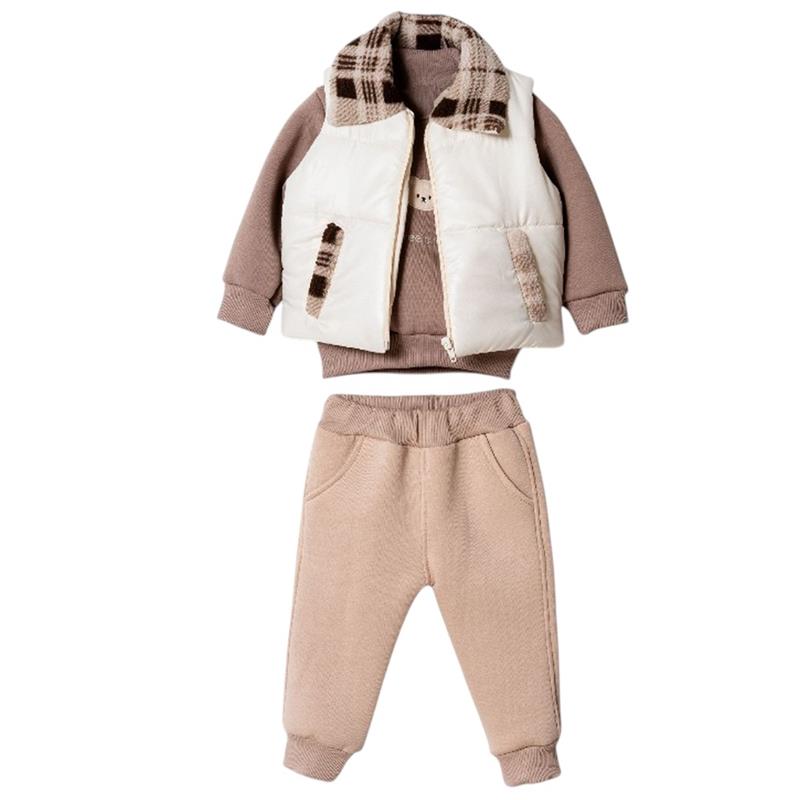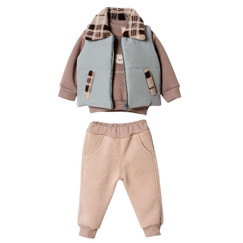 5218 toptan 6-9-12 aylık bebekler için yelekli çocuk kışlık üç parçalı takım elbise